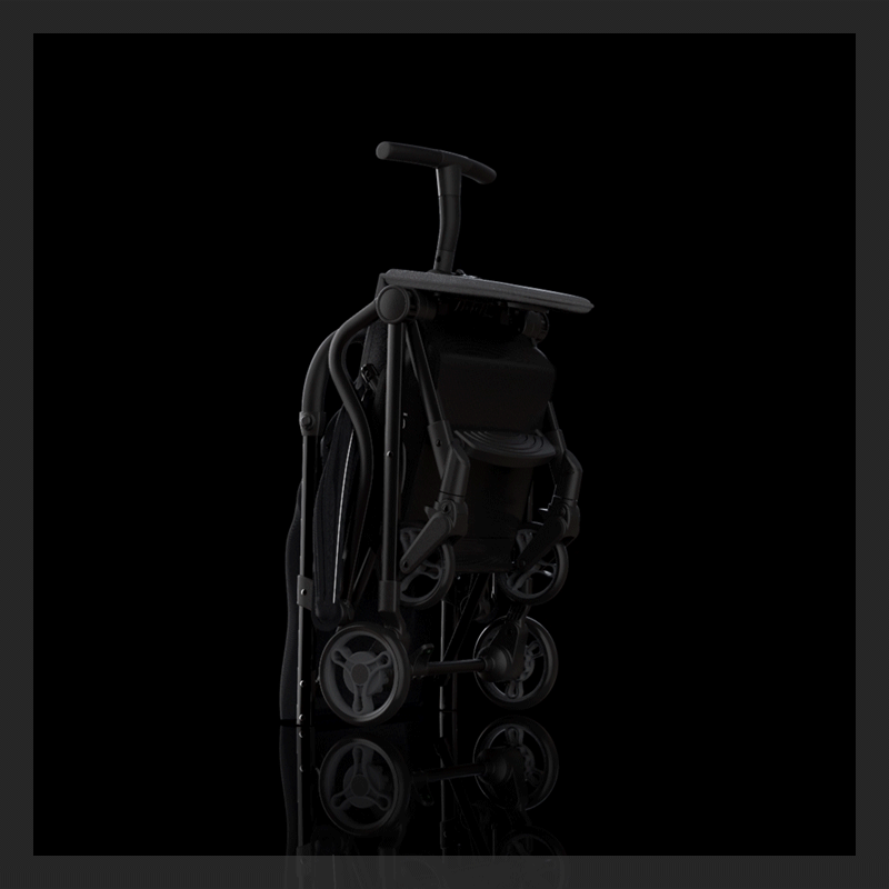 곡선 프레임이 특징인 유모차 디자인은 심플한 라인과 손잡이, 바퀴 등 포인트 컬러로 세련된 느낌을 준다.