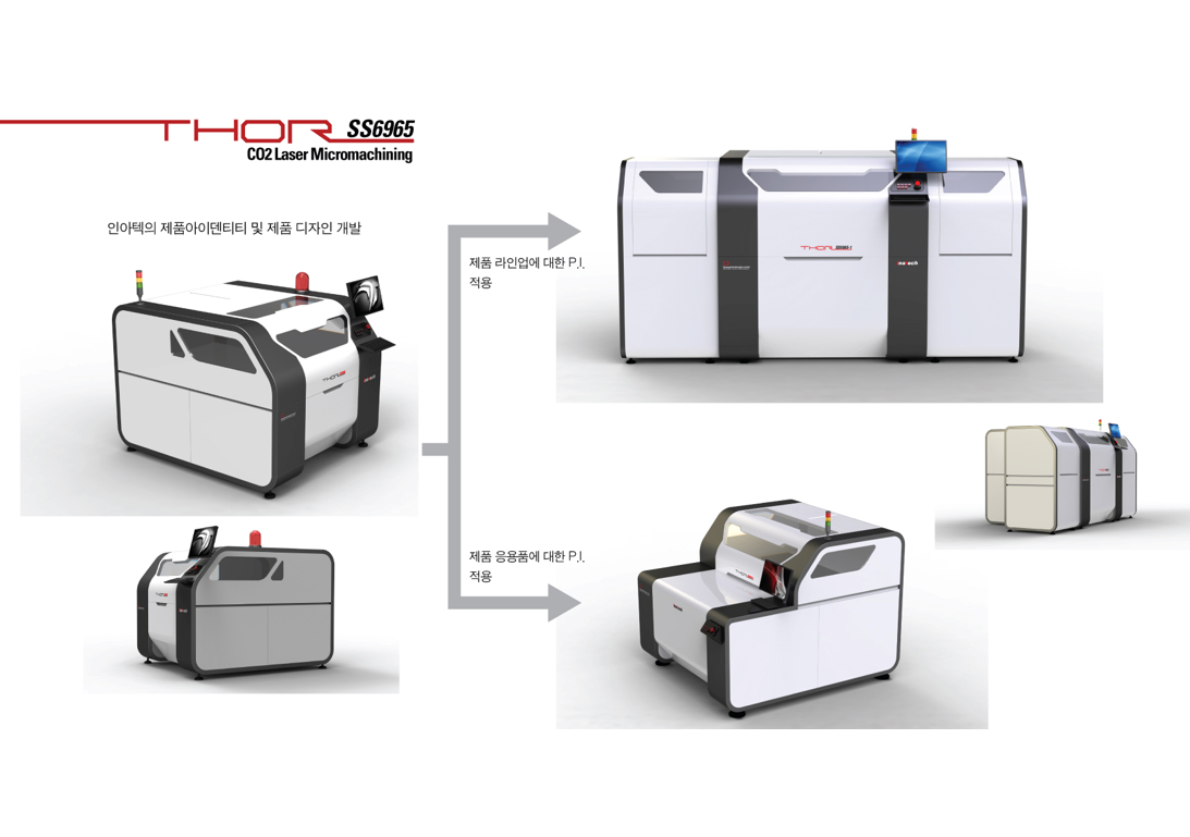 레이저가공기 디자인, 인아텍 1) 패밀리룩이 반영된 레이저가공기 디자인 2) 판금물의 장점을 극대화한 디자인 3) 사용편의성 증대위해 접근도어 및 창문을 사선유지