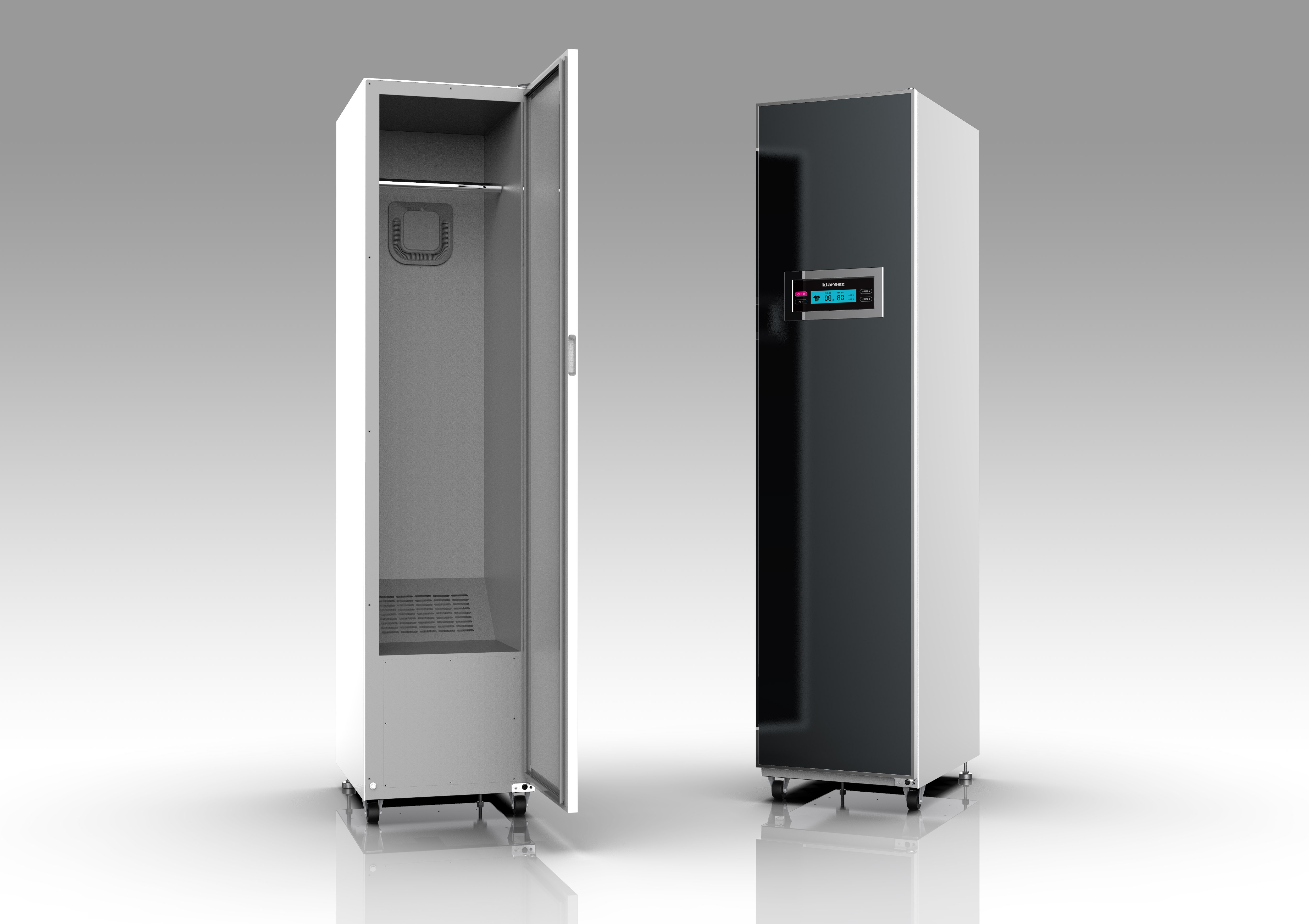 산업 현장에서 유니폼의 위생 관리를 할 수 있도록 옷 장 형태의 의류 관리기기