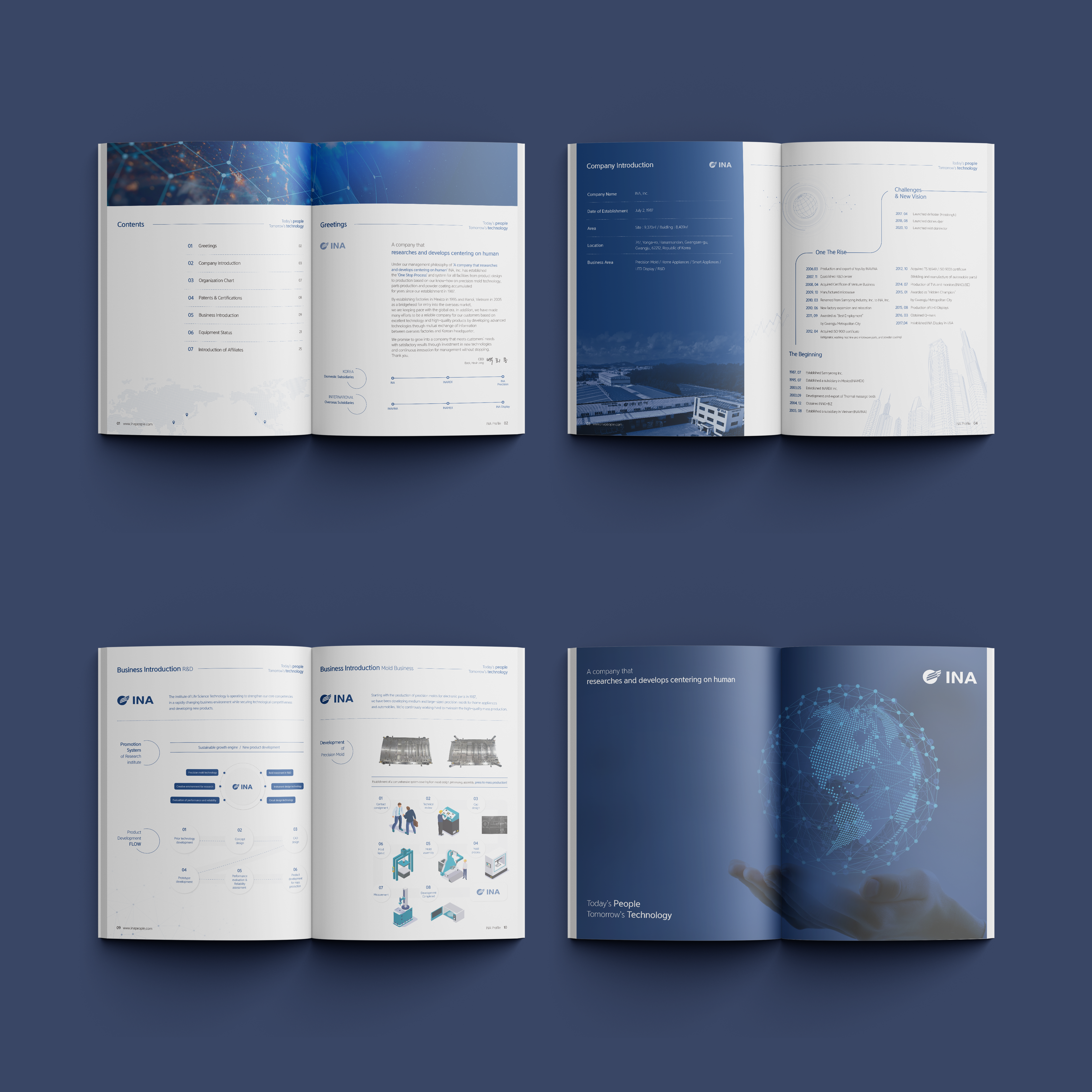 INA 기업소개서 및 제품소개서 디자인입니다. INA의 브랜드 아이덴티티를 활용하여 레이아웃 및 기획하였습니다.