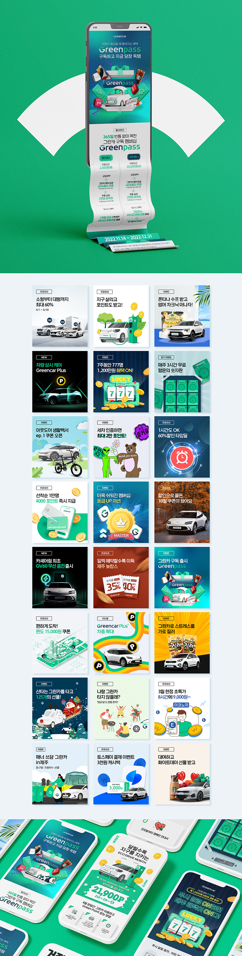 2021년도 부터 카쉐어링 어플리케이션 "그린카" 앱 안에 들어가는 이벤트 상세페이지 제작 및 SNS포스팅 이미지 제작