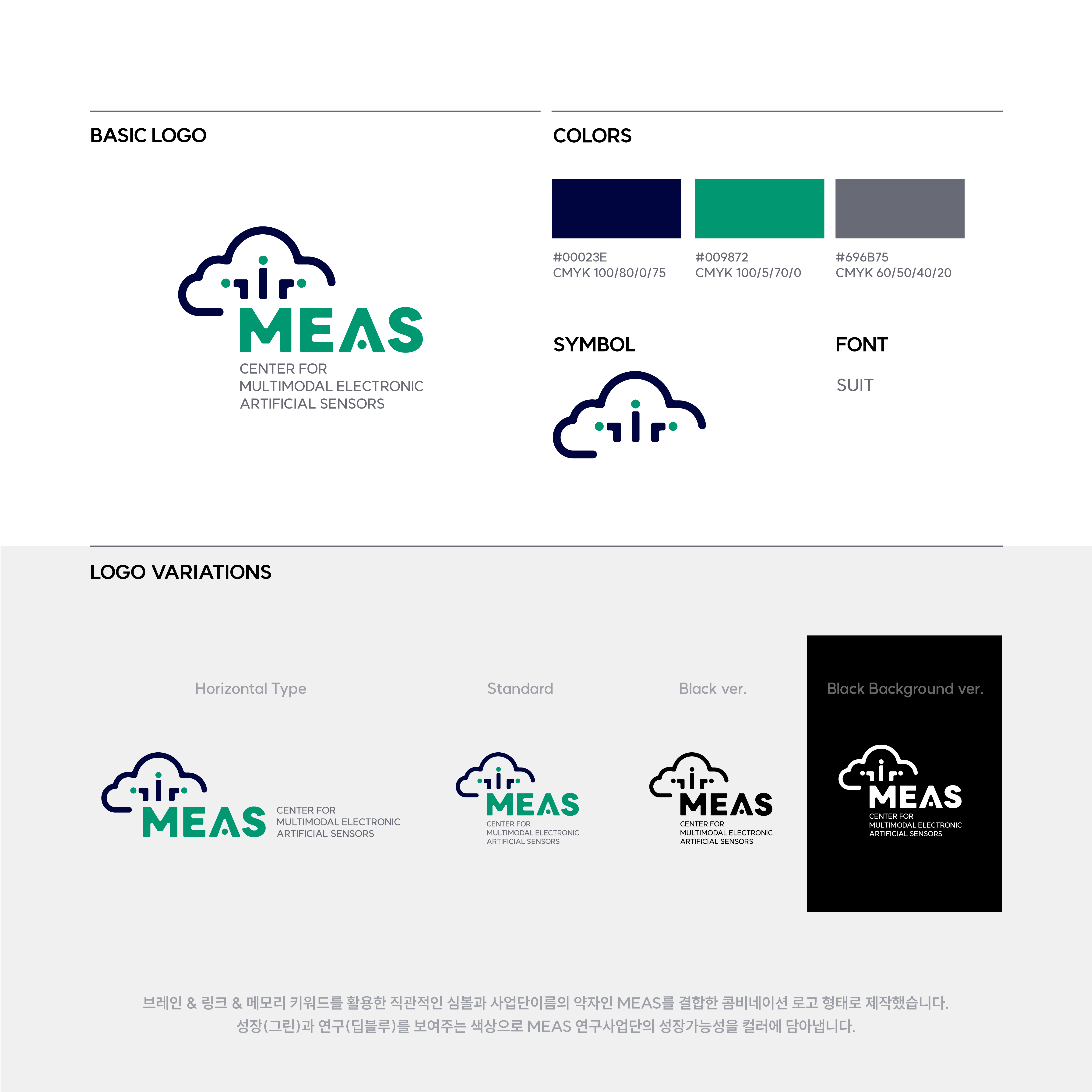 성균관대 브레인링크사업단 MEAS의 CI(센터 아이덴티티) 작업을 진행했습니다. 브레인, 링크, 메모리 키워드를 활용한 직관적인 심볼과 사업단이름의 약자인 MEAS를 결합한 콤비네이션 로고 형태로 제작했습니다.