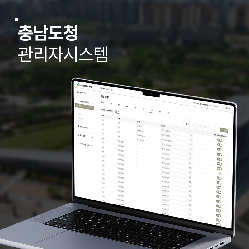 충남도청 안내 키오스크와 관리자시스템을 구축하였습니다. 충남도청 안내 키오스크는 청사 정보 제공을 목적으로 직관적이고 쉬운 UX/UI로 사용자가 쉽게 정보를 습득할 수 있도록 디자인 및 개발 되었습니다.