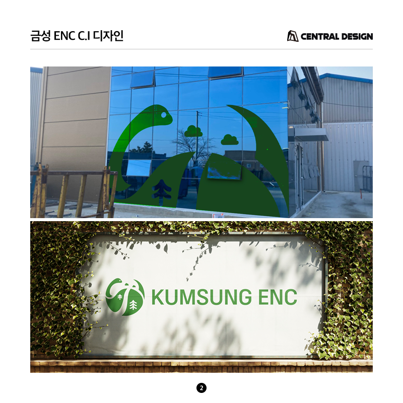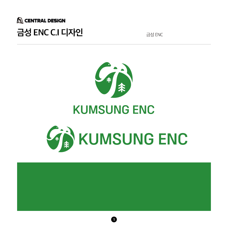 금성 ENC의 C.I는 자연과 기술의 조화를 바탕으로 친환경 기업 이미지를 표현한 디자인입니다. 원형 안에 자연 요소를 단순화해 안정성과 지속 가능성을 상징하고, 그린 컬러로 신뢰감을 전달하도록 설계하였습니다.