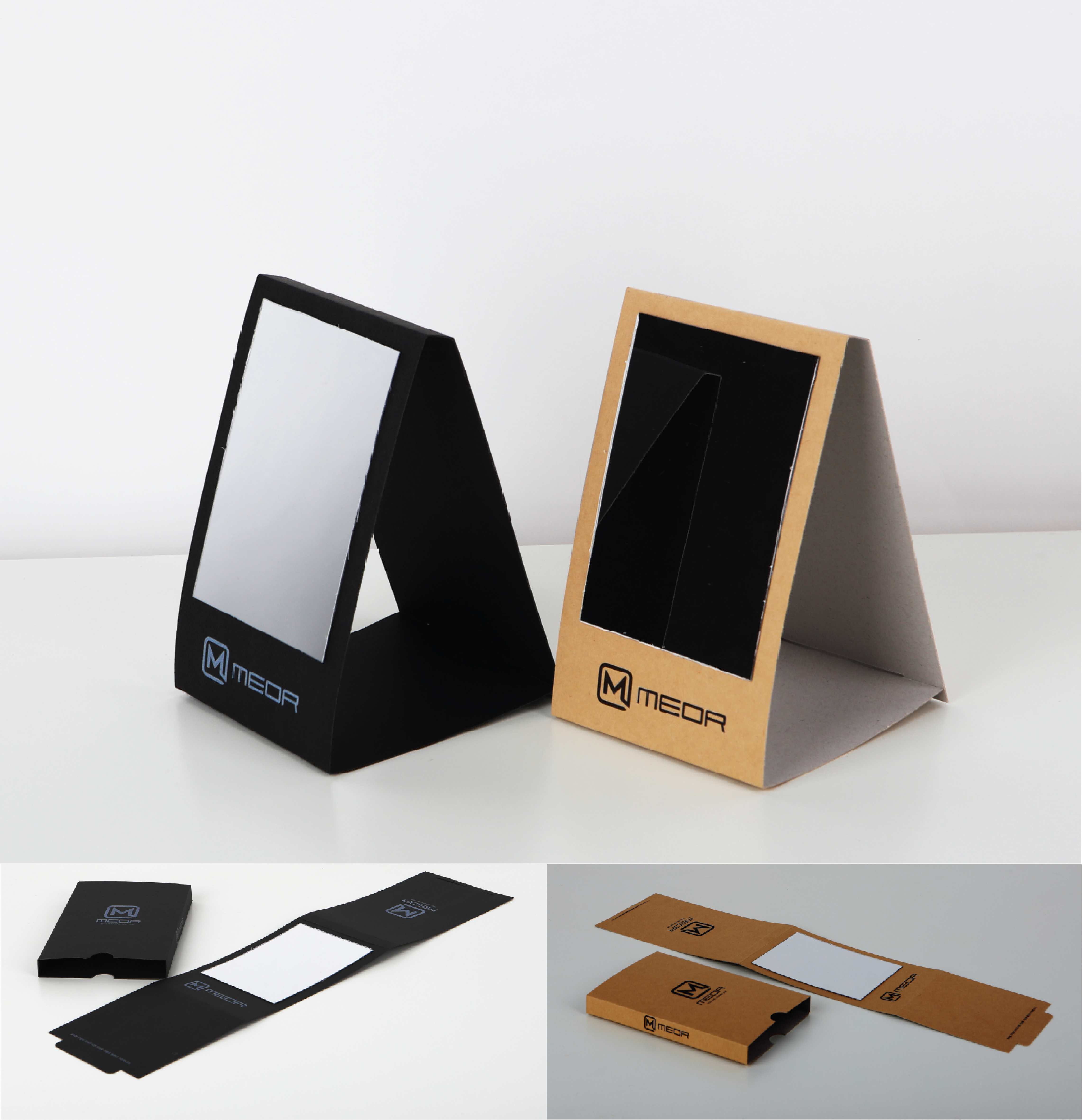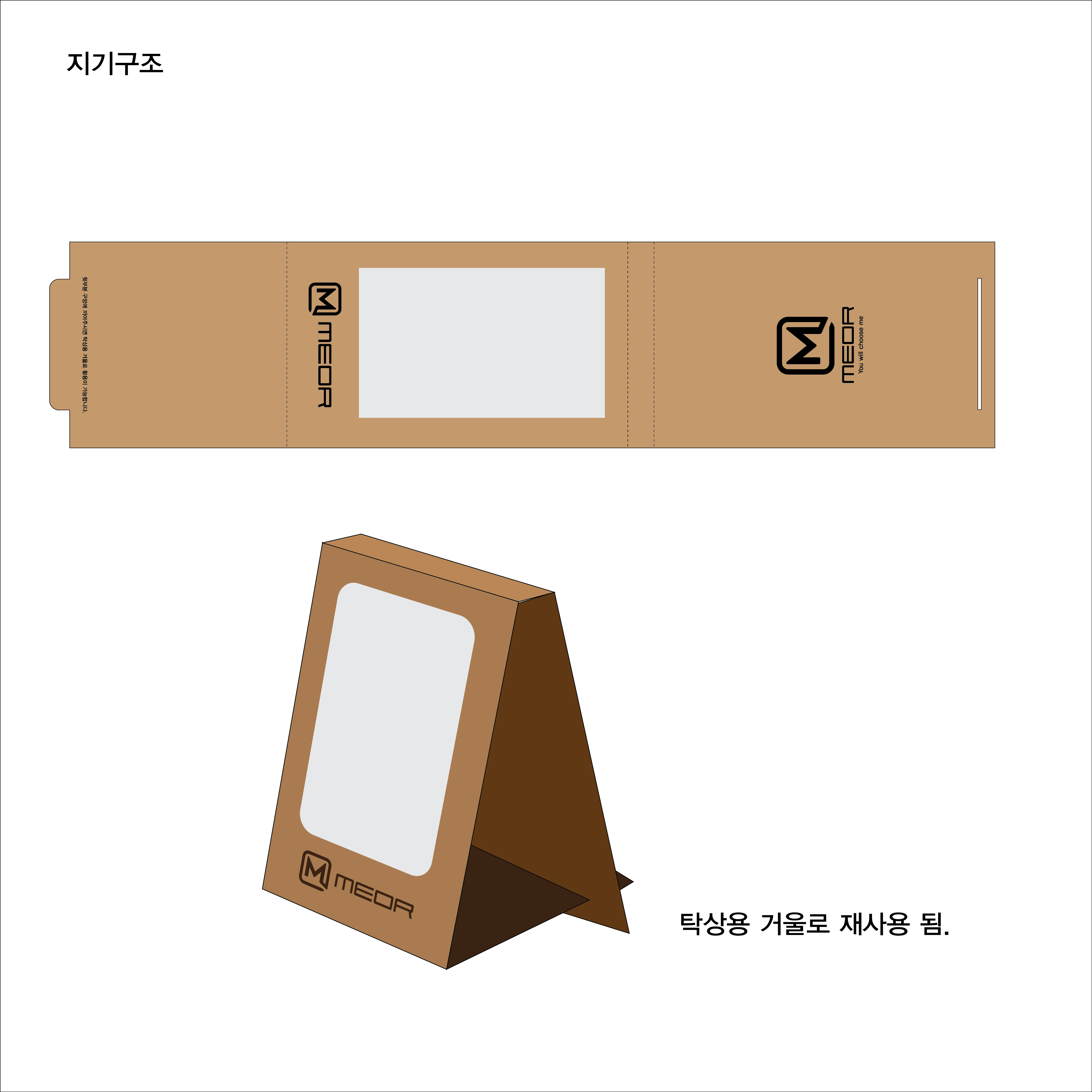 메오르는 버려지는 포장이 아닌 재생용지로 환경을 생각하고 포장을 탁상거울로 다시 사용 할 수 있도록 디자인 하였습니다. 패키지 하나에도 즐거움과 재미, 환경을 생각하는 착한 마음을 담는 디자인