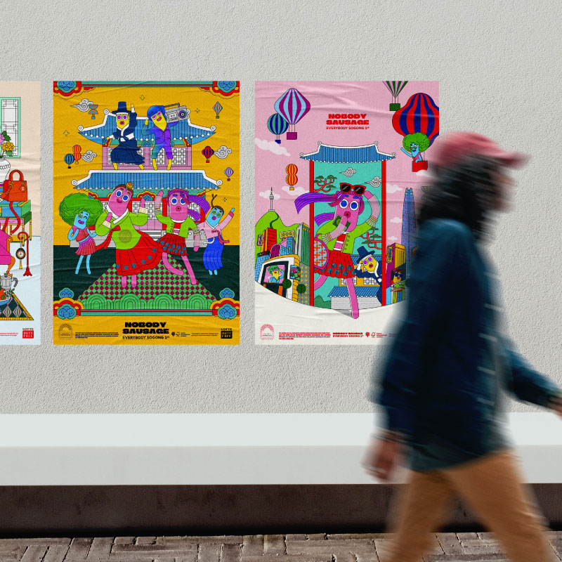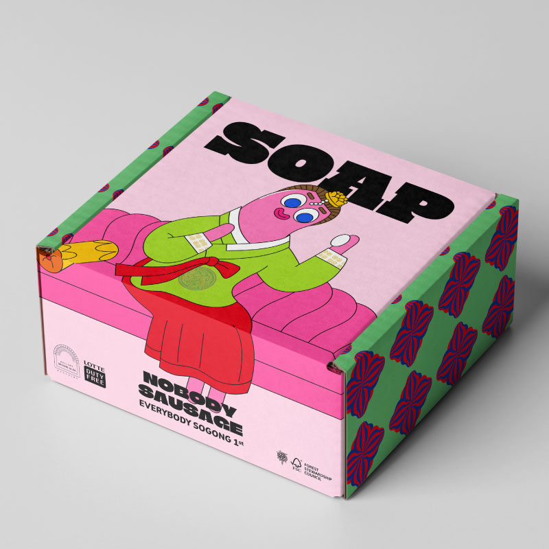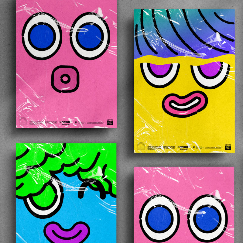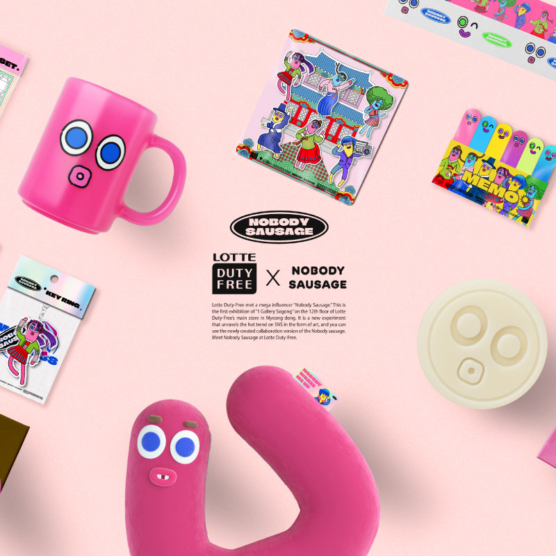 롯데면세점과 인플루언스 채널 '노바디 소세지'의 콜라보레이션 프로젝트 브랜드 디자인입니다. 롯데 브랜드의 정체성 속에서 노바디 소세지의 개성을 살린 굿즈와 패키지 디자인으로 팝업 스토어를 진행.