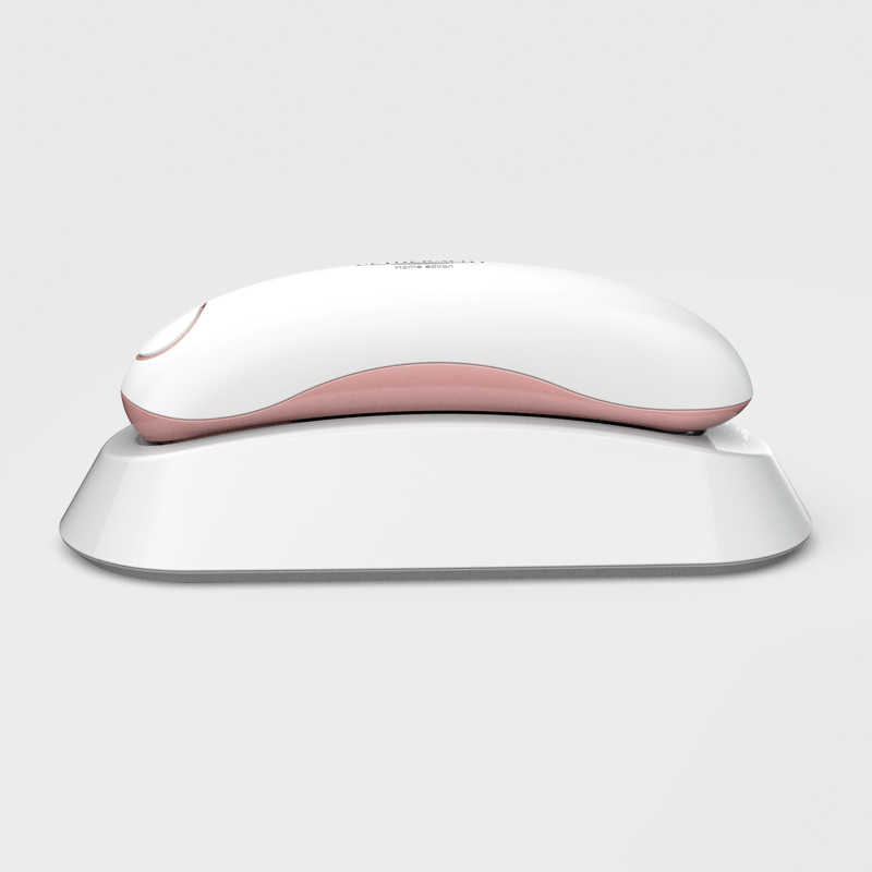 개인용 피부 미용기기 제품으로 장소제약 없이 사용가능하며 기존 미용기기들과 차별화를 두어 심플한 라인으로 디자인하였으며, 제품의 주 타겟층인 여성의 손 크기 및 그립을 중심으로 한 인체공학 디자인입니다.