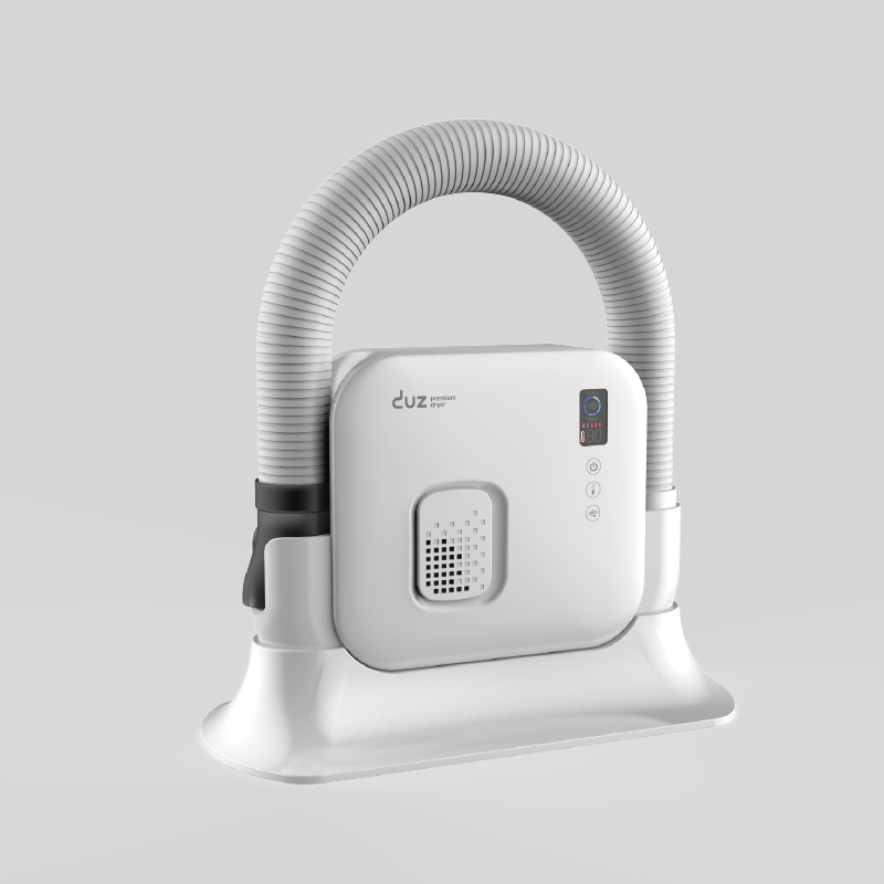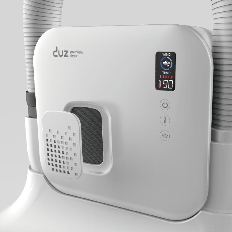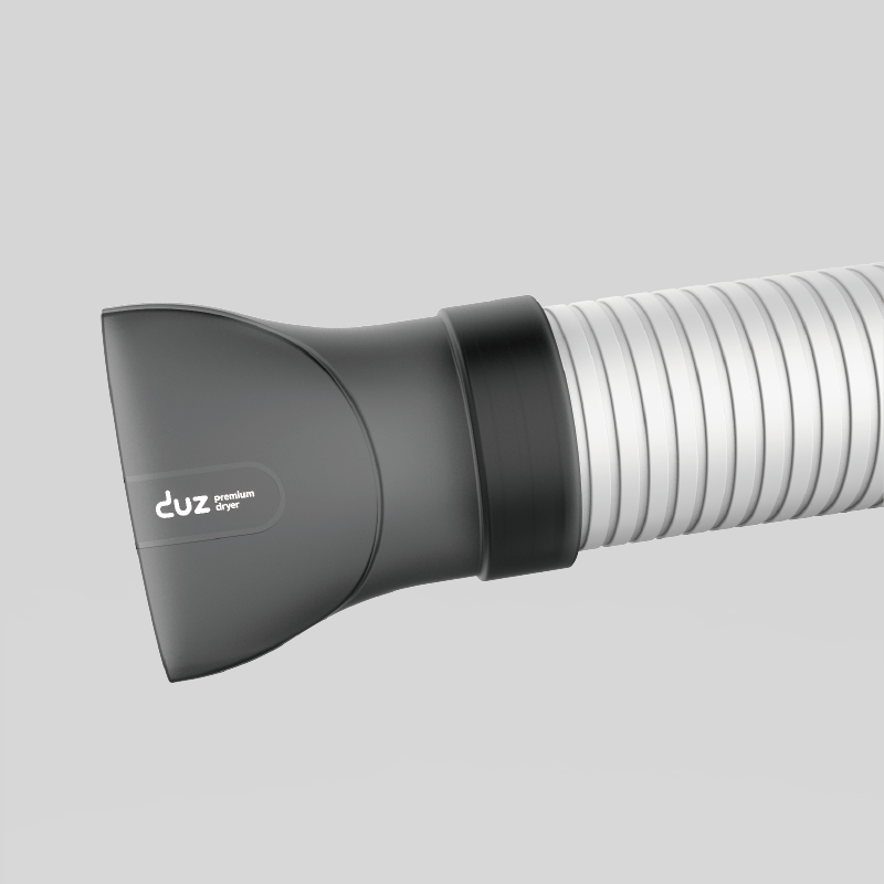 드라이기 본체에 프렉시블 호스를 장착하여 두손이 자유롭게 사용하는 핸즈프리 드라이어