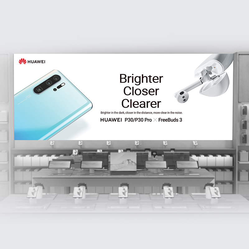 썸코리아는 2020년 화웨이 매장에 전시될 POSM과 키비주얼을 디자인하였습니다. 탄탄한 디자인 리서치와 기획을 통해 심플하면서도 화웨이만의 색깔이 담긴 디자인을 만들어냈습니다.