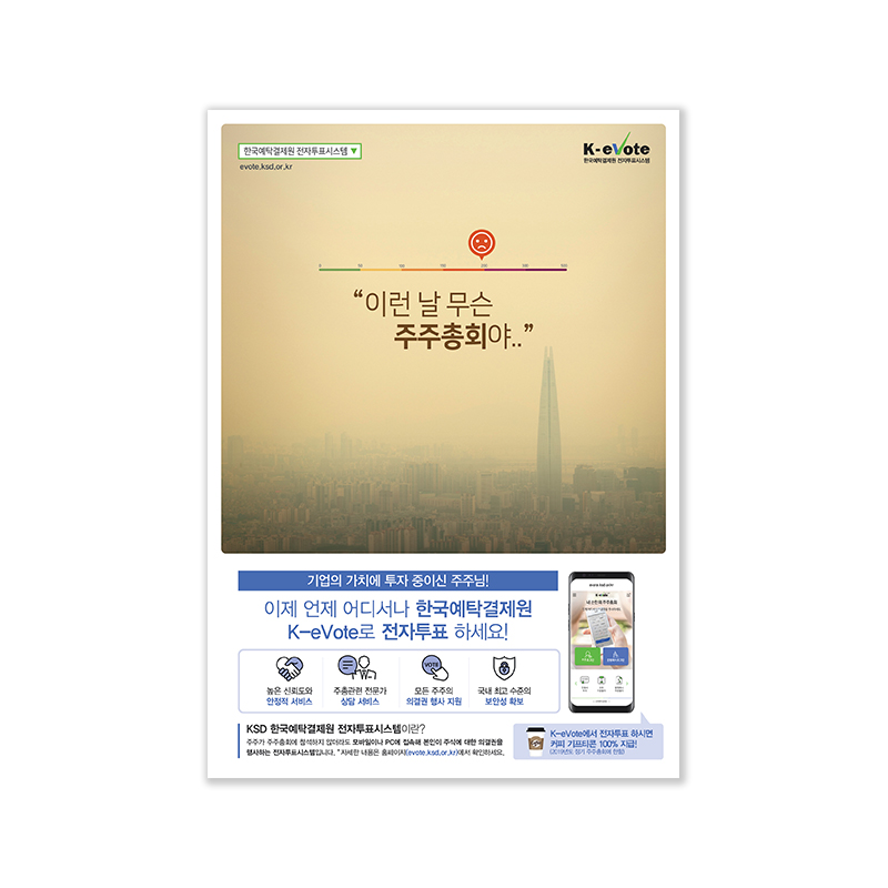 썸코리아는 한국 예탁결제원 광고디자인을 진행하였습니다. 소비자의 공감대를 이끌어내는 기획과 함께 이를 효과적으로 보여줄 수 있는 Key Visual을 개발하여 다양한 매체를 통해 홍보하였습니다.