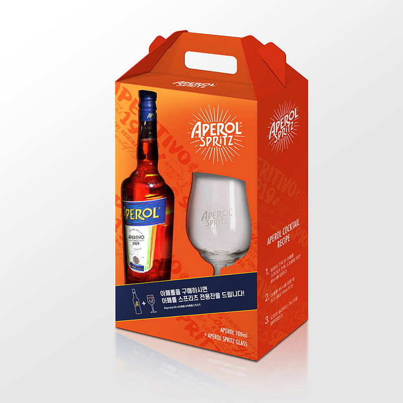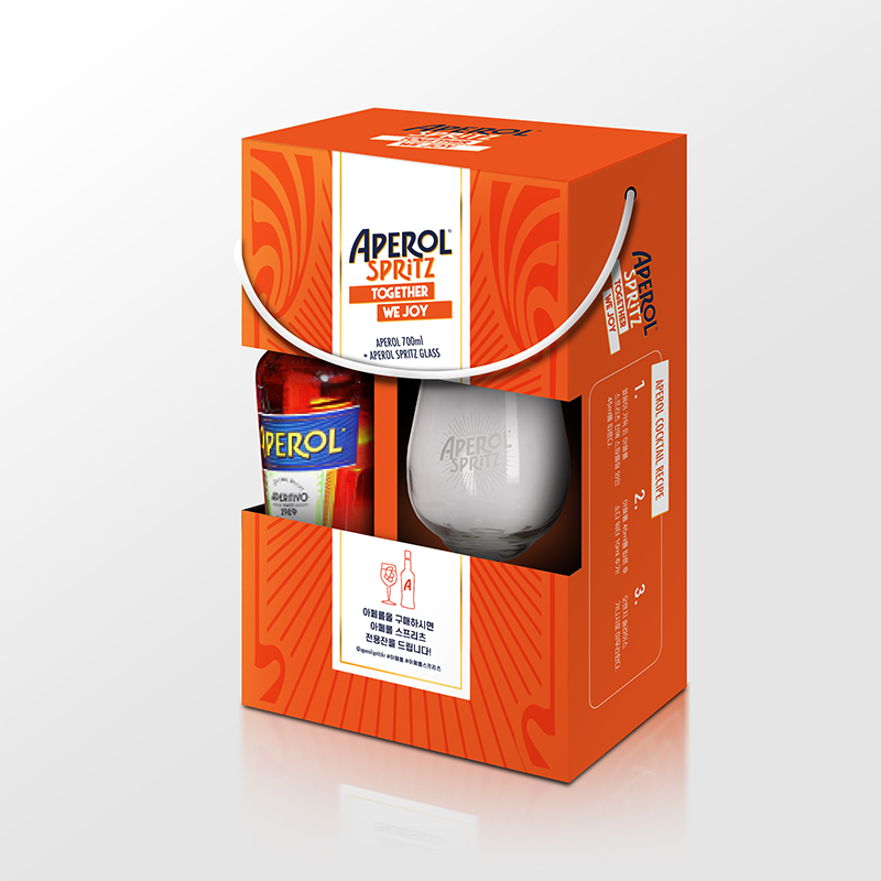 썸코리아는 해외 주류인 아페롤 / SKYY보드카의 패키지 디자인을 진행하였습니다. 디자인적으로 각각 주류의 성격을 살리면서도 포함되는 판촉물이 하나의 패키지에 안전하게 담길 수 있도록 구조를 개발하였습니다.