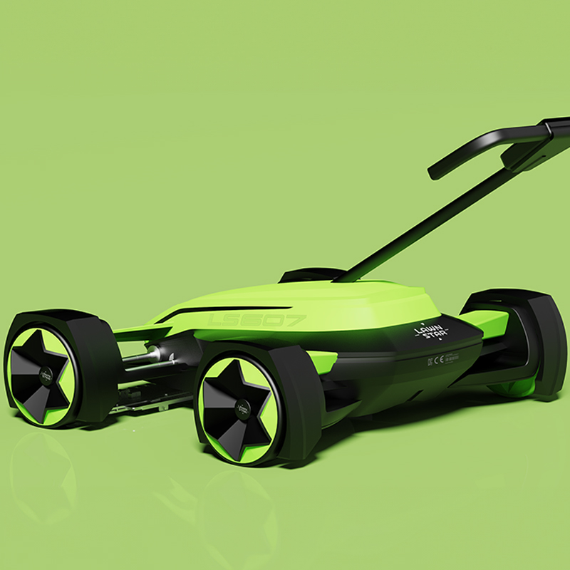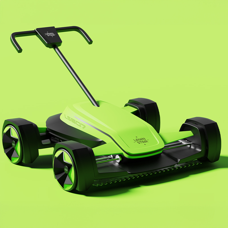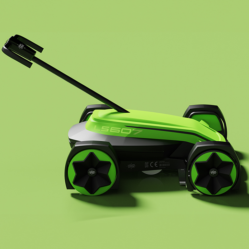 특허 출원된 3중 절삭 방식의 커터를 적용한 수출형 미니 잔디깍기 운송디자인으로 기존 폼과 차별화 된 F1 타입의 조형 컨셉의 제품디자인