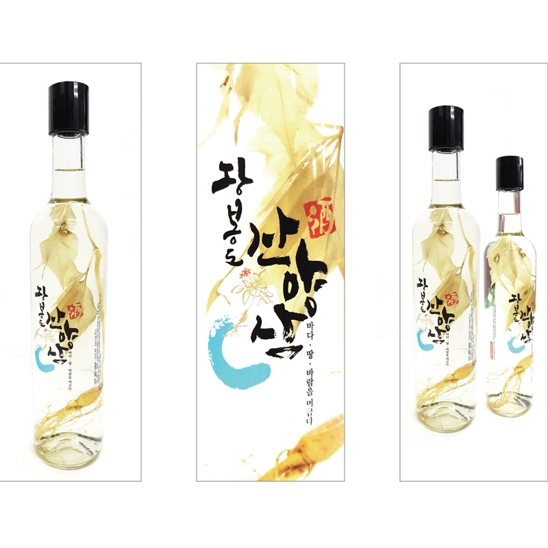 장봉도에서 생산되는 산양삼으로 만든 보양주. 무공해 청정지역과 원산지에서 제작하는 점을 강조.