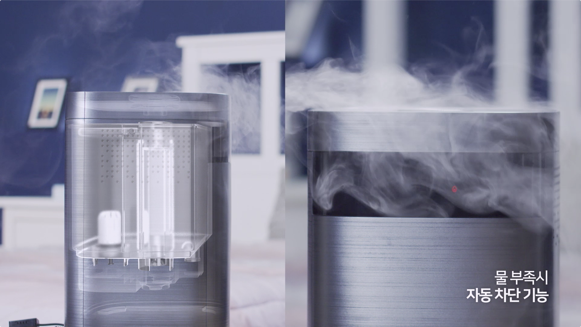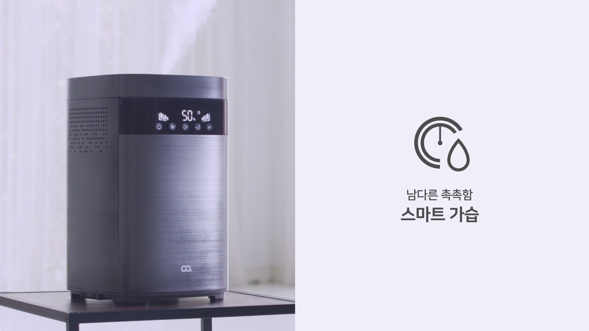 생활용품 전문회사 오아의 가습기 제품홍보영상 / 블랙배경과 고속촬영으로 제품의 고급스러움을 표현 / 각 기능별 특장점을 쉽게 전달할 수 있도록 스튜디오촬영 및 고속촬영, 3D영상 합성등을 이용하여 제작