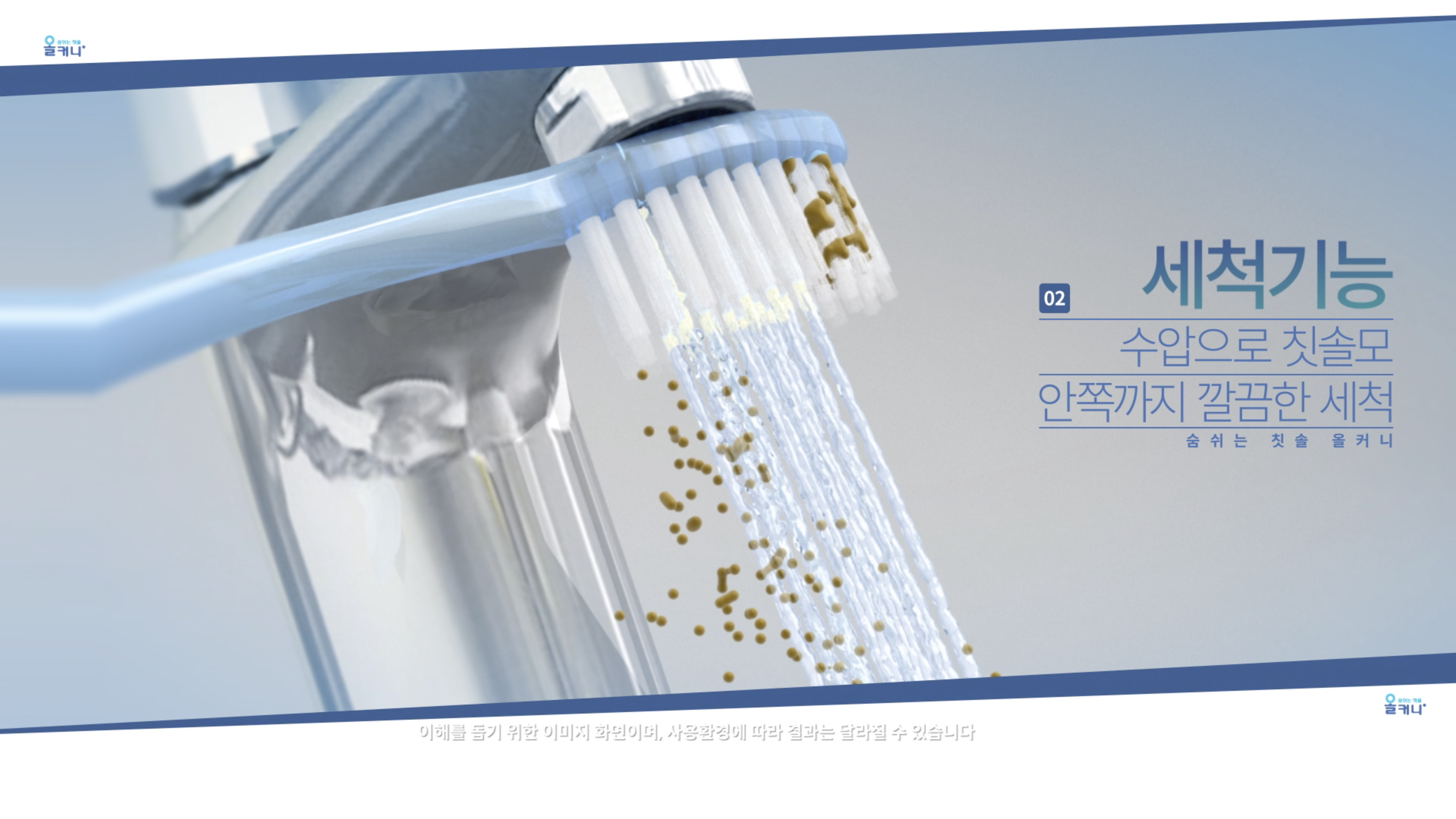 올커니의 특허제품 숨쉬는 칫솔의 홈쇼핑영상 / 스튜디오 촬영을 통해 디자인등 실제 사용모습등을 표현하고, 3D제작을 통해 기술특허의 장점을 직관적으로 볼 수 있도록 제작 / 홈쇼핑 및 영업에 적극활용