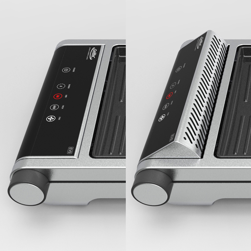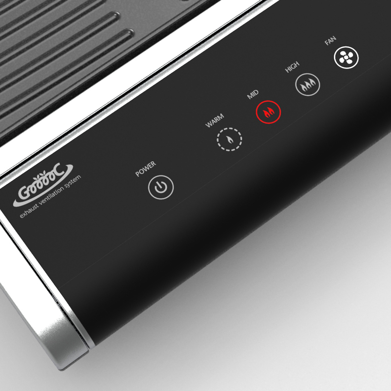 고기를 구울 때 발생하는 연기와 냄새를 배기환류 시스템으로 최소화시킨 "빌트인(BUILT-IN) 방식"의 디자인. 보관 시에는 흡기/배기부를 닫을 수 있으며, 사용 시에는 오픈 시킬 수 있다.