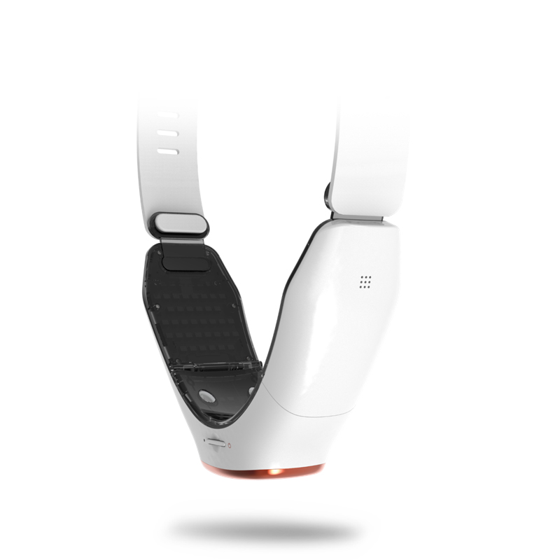 LED와 갈바닉을 이용하여 턱과 목을 케어하는 미용기기.