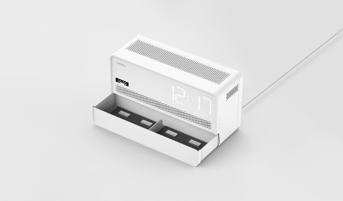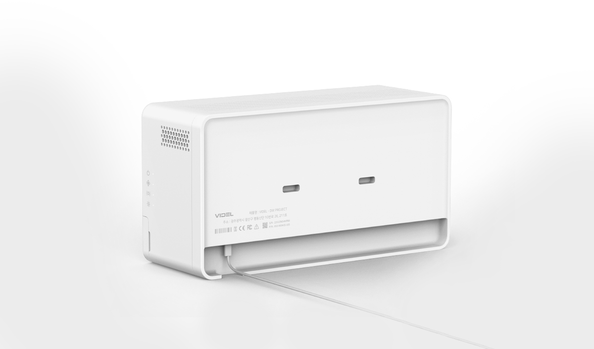 공기탈취기 제품으로 물을 넣으면 분해해서 공기 살균 기능이 있는 제품의 디자인입니다. C타입 충전방식으로 고려하여 사용하던 스마트폰 충전기 그대로 사용할 수 있도록 개발하였습니다.