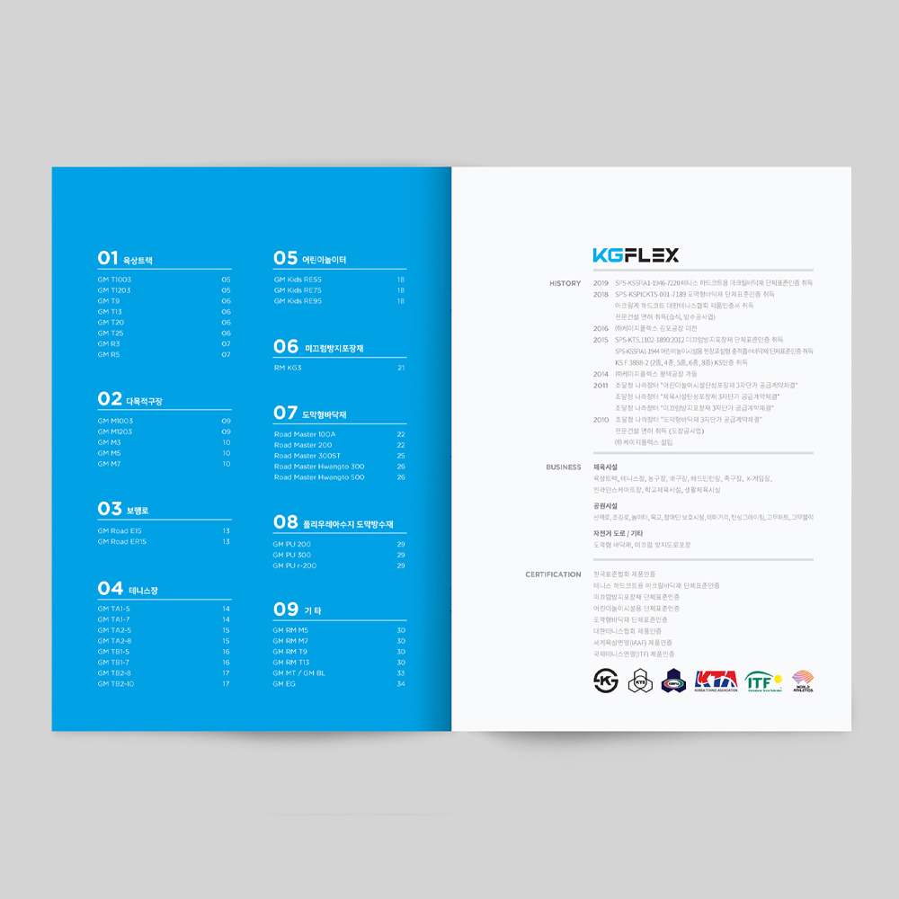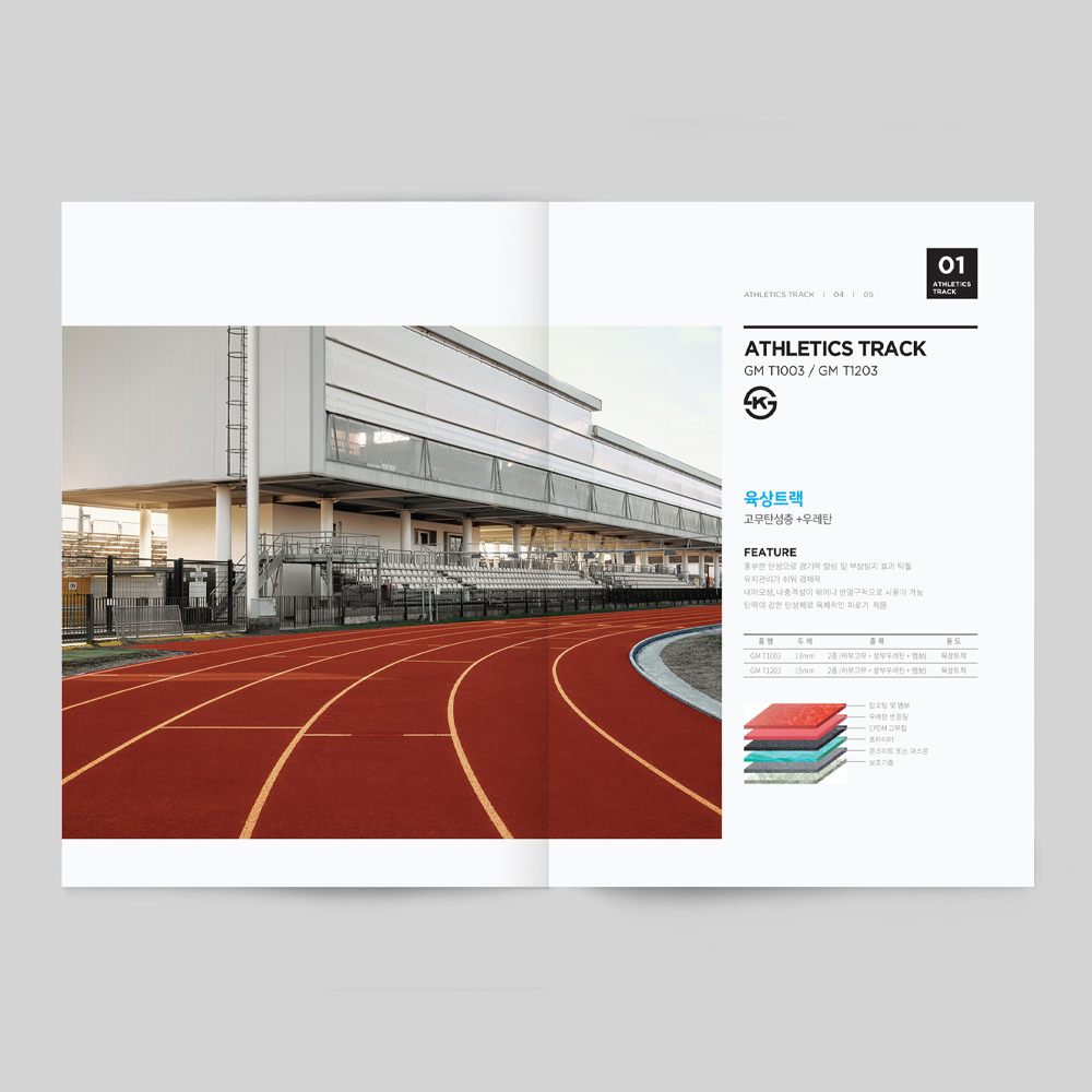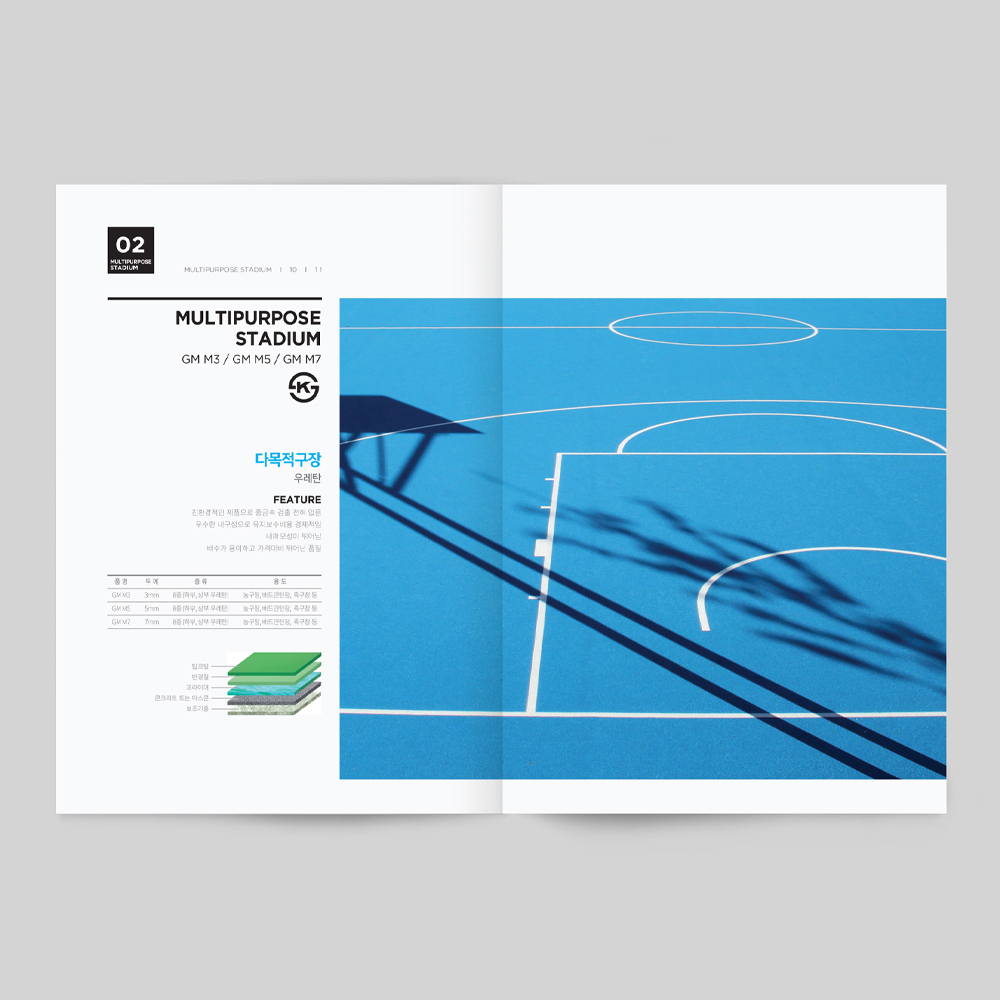 미니멀한 레이아웃에 대형 현장 이미지를 배치해 제품 신뢰감과 전문성을 강조한 브로슈어로써 정보 구조를 명확히 정리해 브랜드 아이덴티티와 제품 특성을 직관적으로 전달한다.