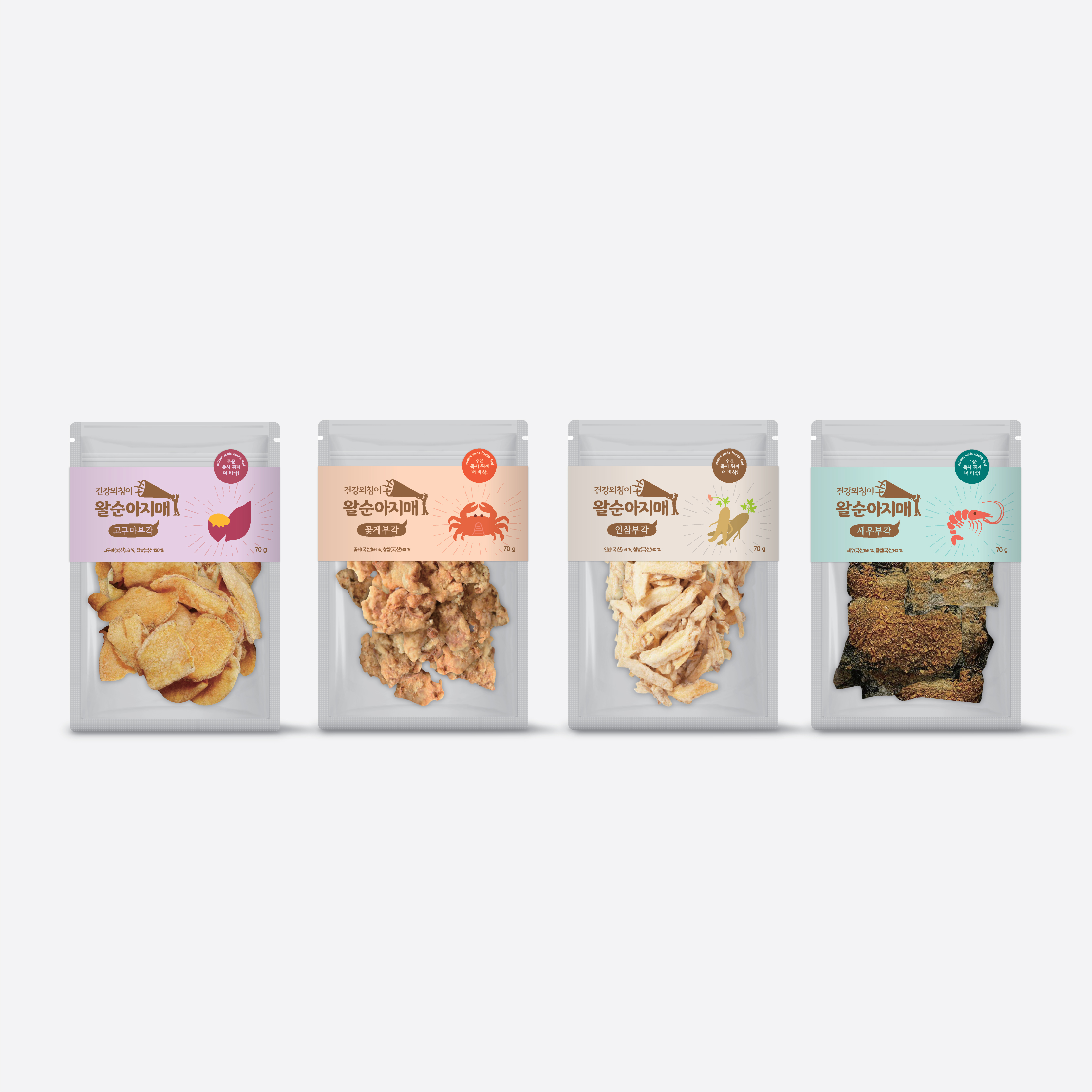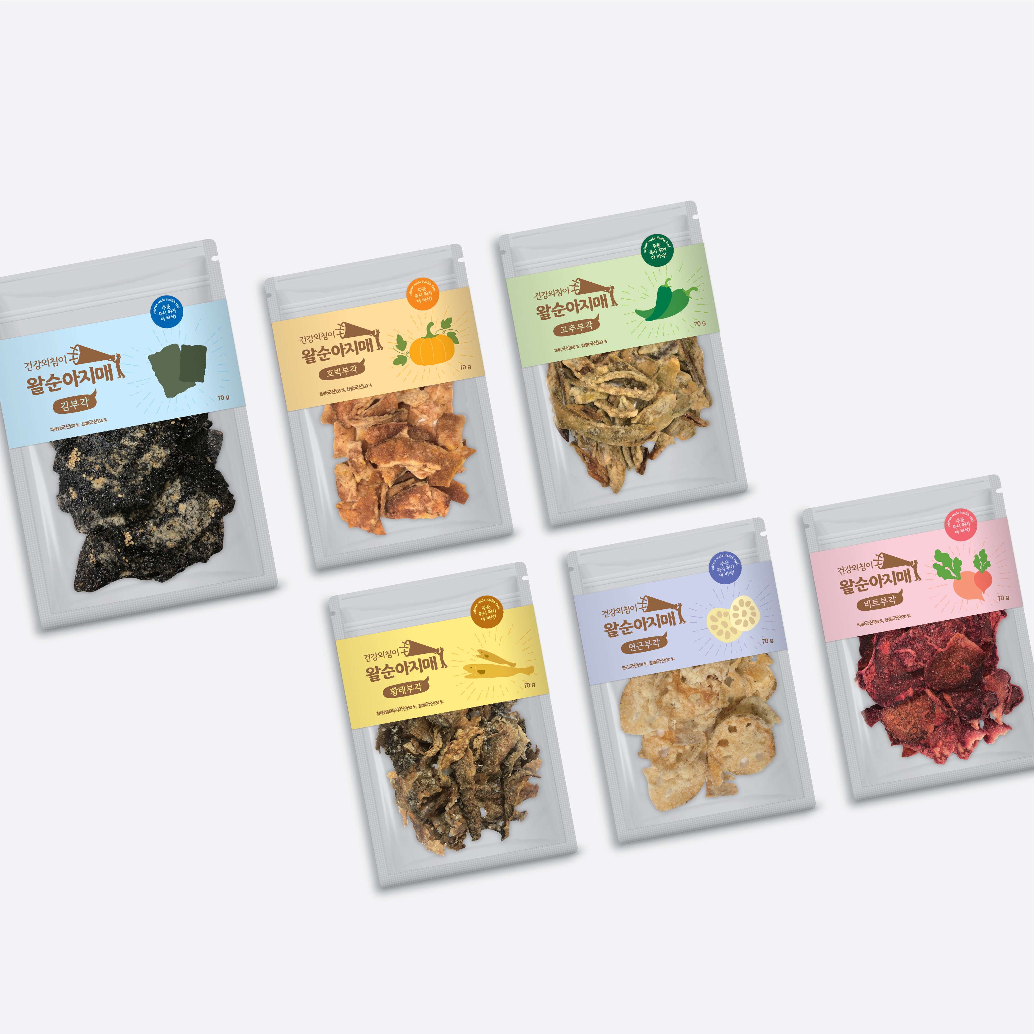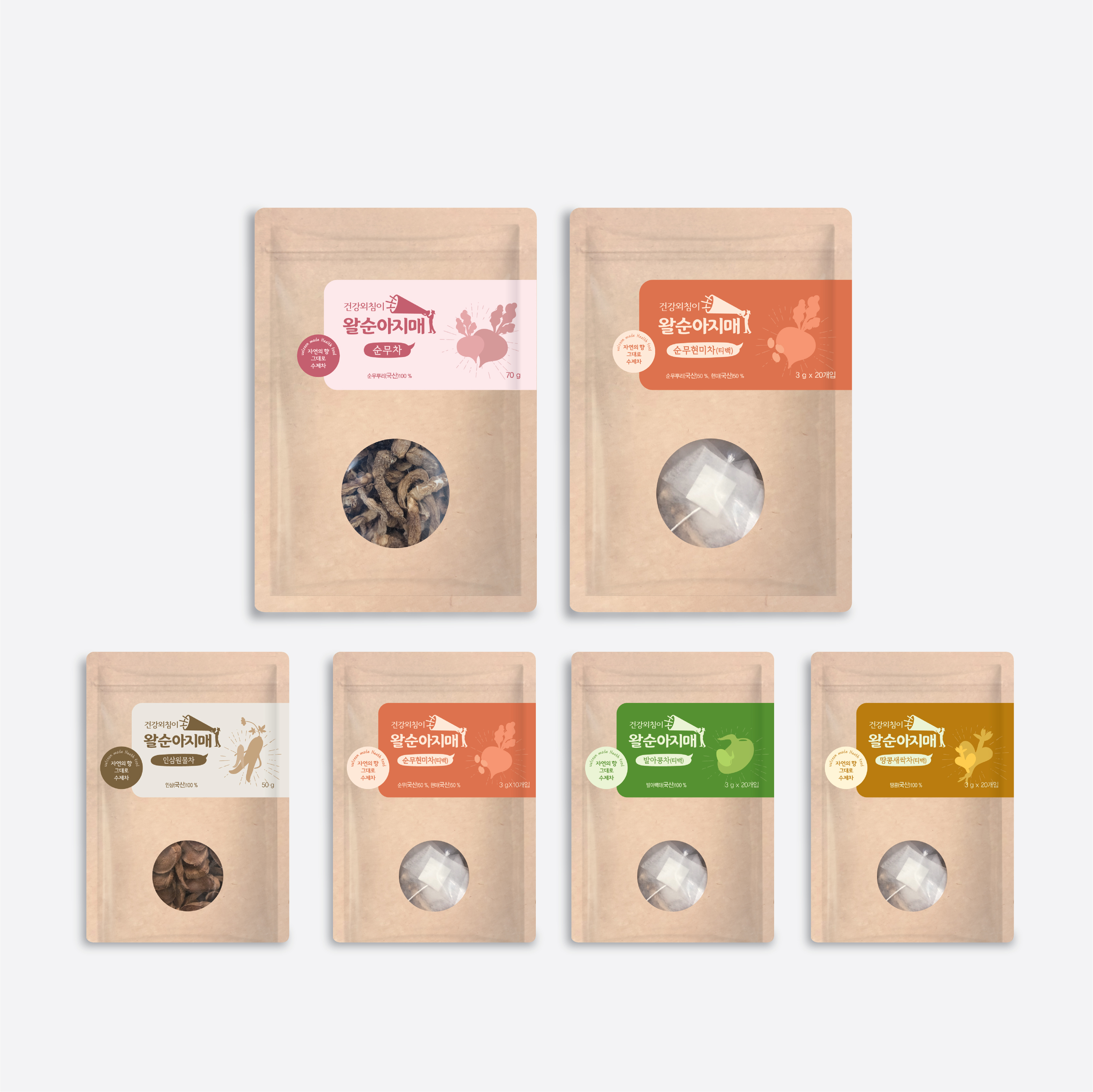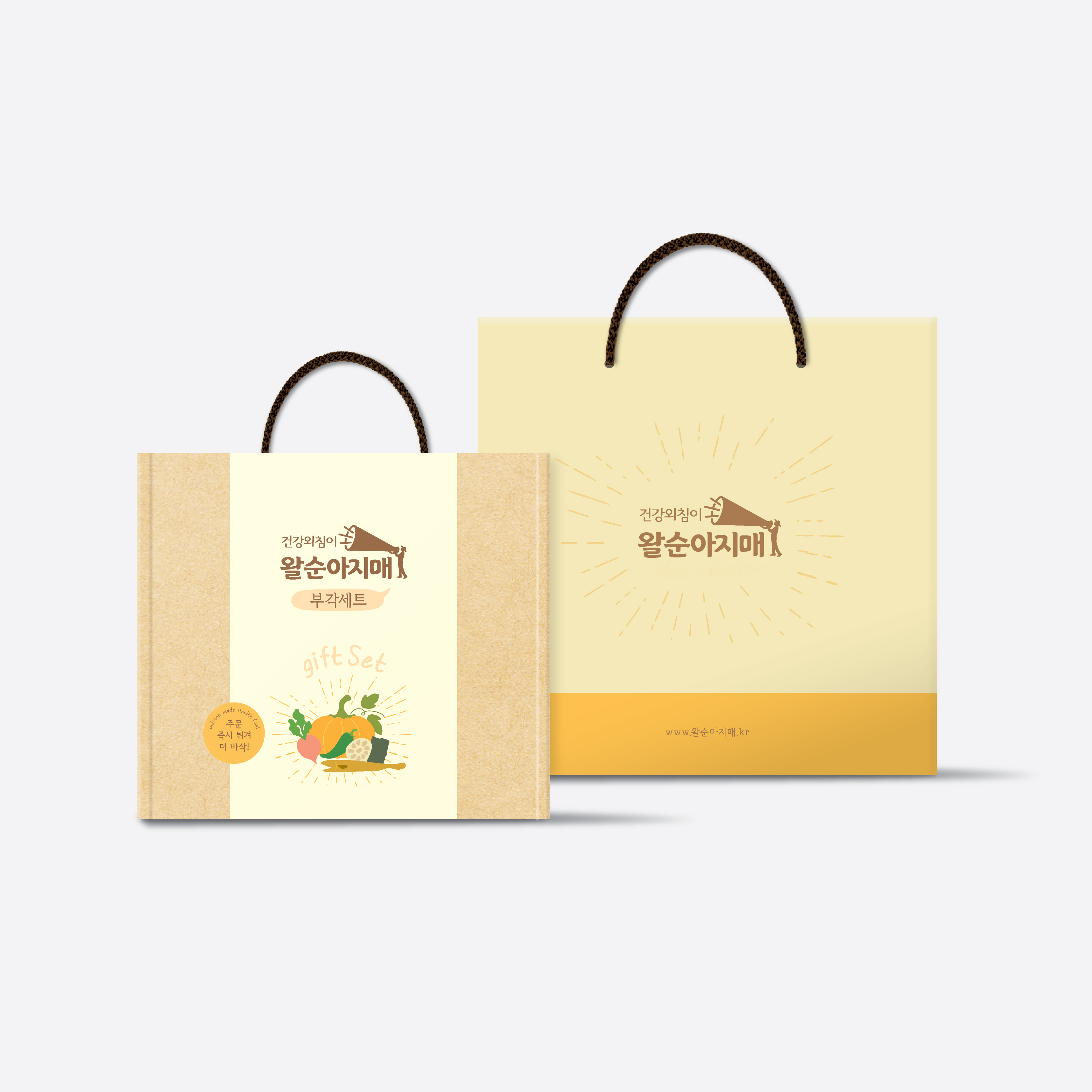 국민의 건강을 생각하는 대변자로서의 왈순아지매를 표현한 디자인이다. 좋은 원재료의 건강한 먹거리를 널리 외치는 이미지를 확장되는 선으로 표현하고 파스텔톤 색상으로 자극적이지 않고 순수함을 강조했다.