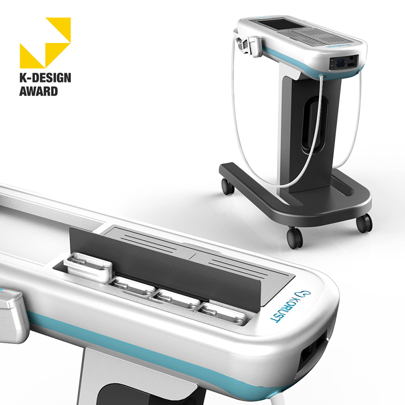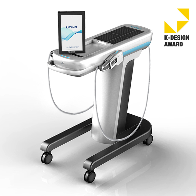 유려한 곡면 바디와 슬림한 카트 구조를 적용해 의료기기의 전문성과 이동 편의성을 높인 디자인이다. 듀얼 다이내믹 초음파와 고강도 집속 초음파 기능을 통합해 직관적 사용성과 첨단 이미지를 동시에 구현했다.