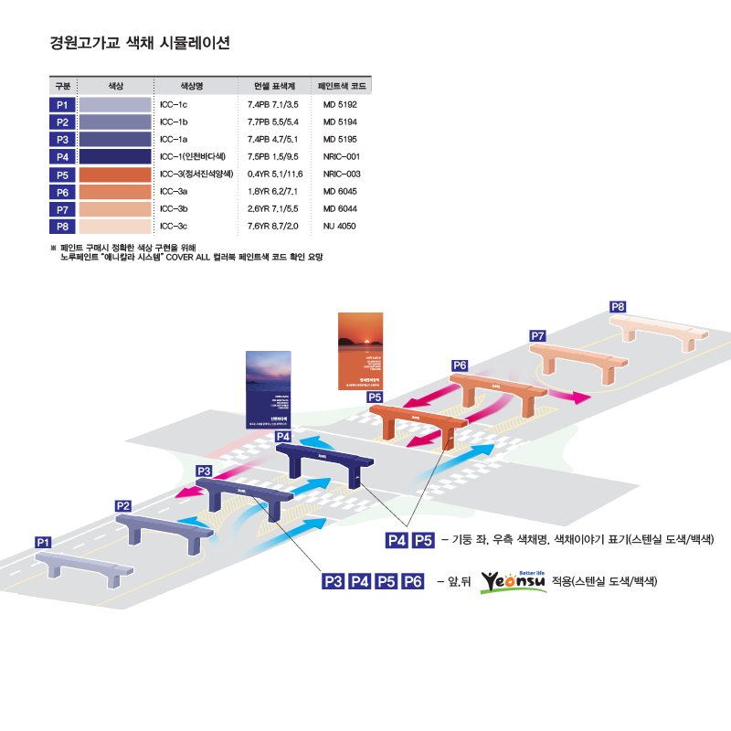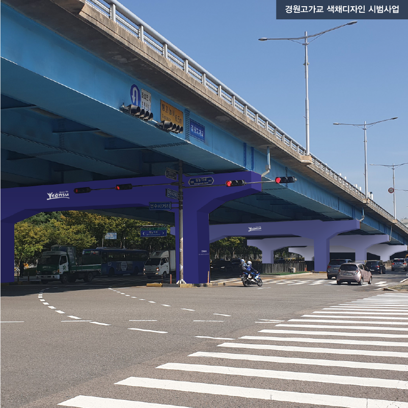 연수구 내 경원, 동춘 두 곳의 고가교에 인천10색을 활용한 색채 디자인