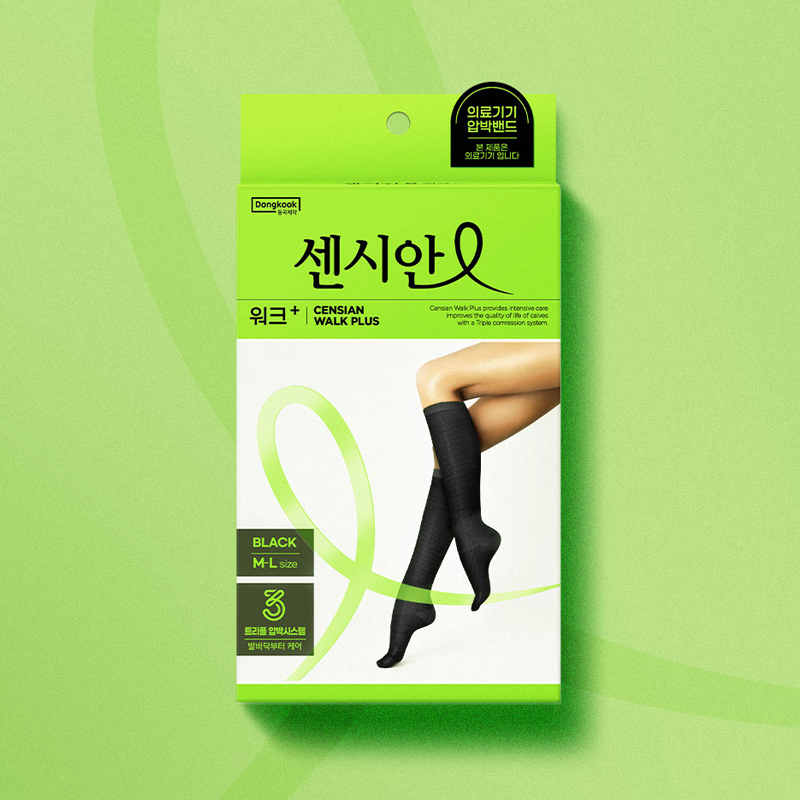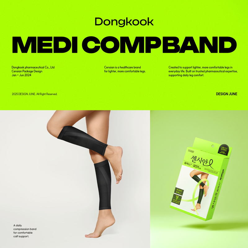 '가볍고 날씬한 다리'를 만들어주는 센시안 압박밴드의 전문적이면서 세련된 이미지의 디자인으로 표현