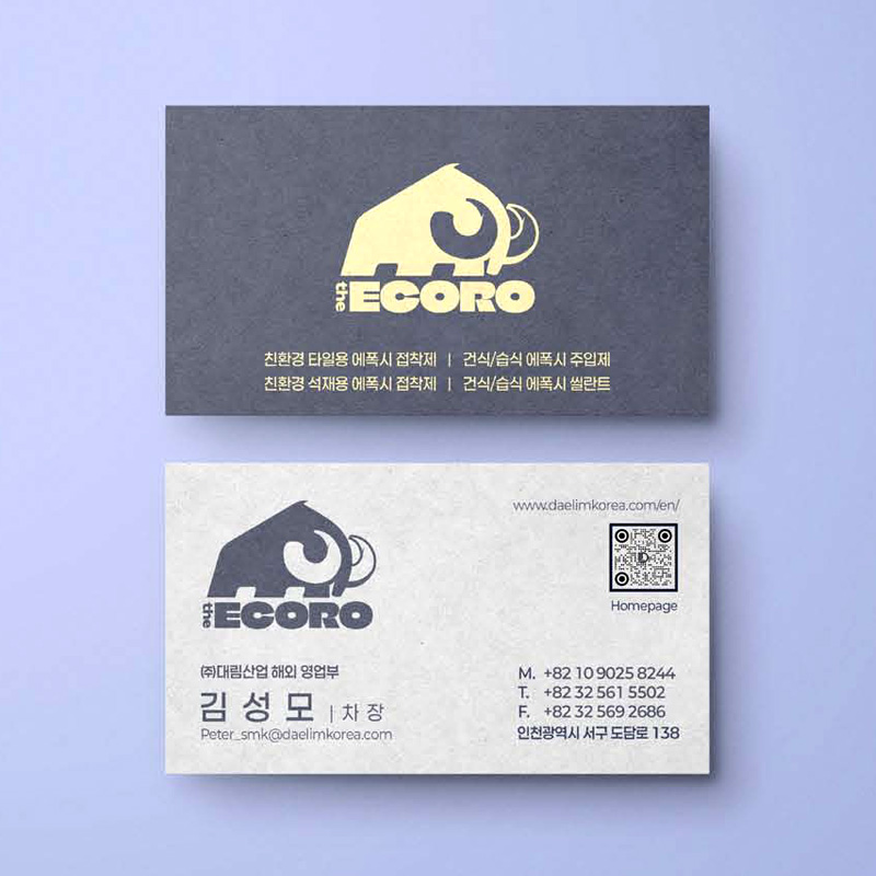 기존 '대림' 브랜드에서 친환경 컨셉을 전달할 수 있는 건축자재 브랜드로 거듭나기 위해 'The Ecoro' 브랜드 네임과 멸종된 맘모스를 모티브로 B.I 디자인 개발