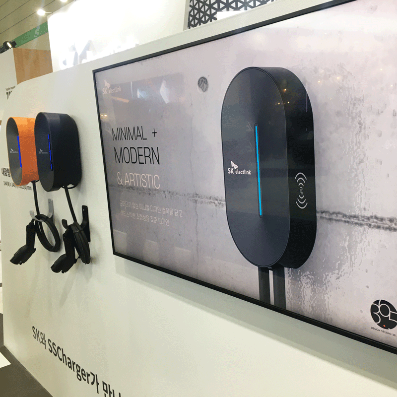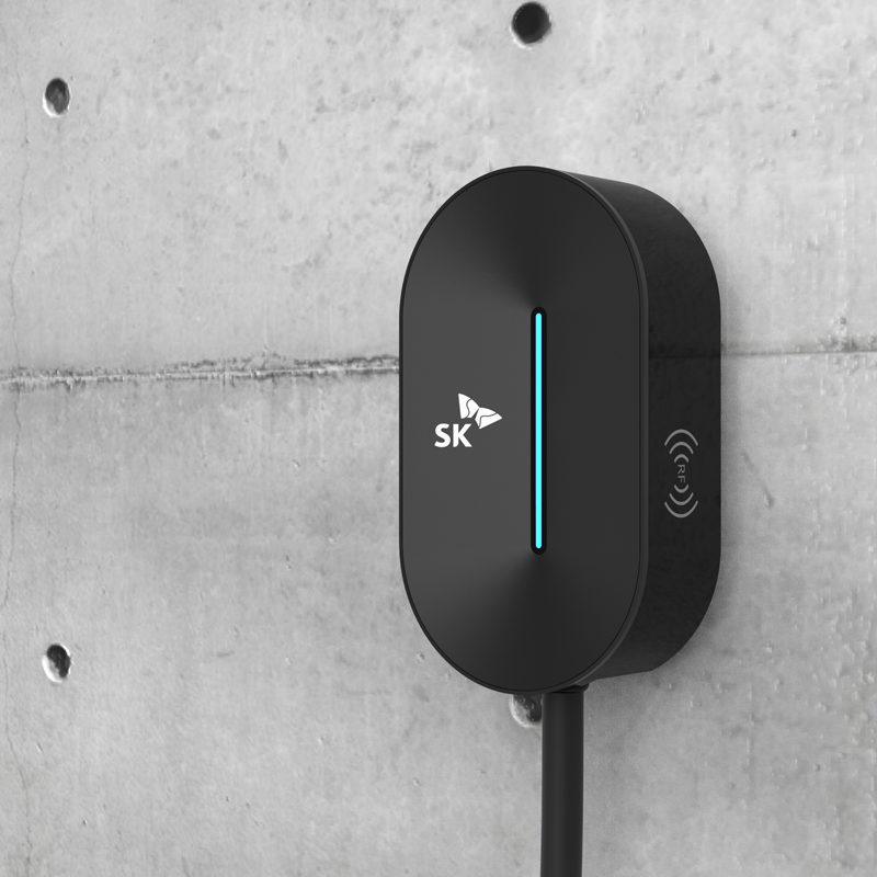 SK 7KW 비공용 전기차충전기 가정이나 공용공간에 설치해서 사용하는 전기차 충전기 제품디자인. 심플하고 미니멀한 디자인컨셉의 세련된 전기차 충전기 www.designstudio365.com / 010-8253-2403