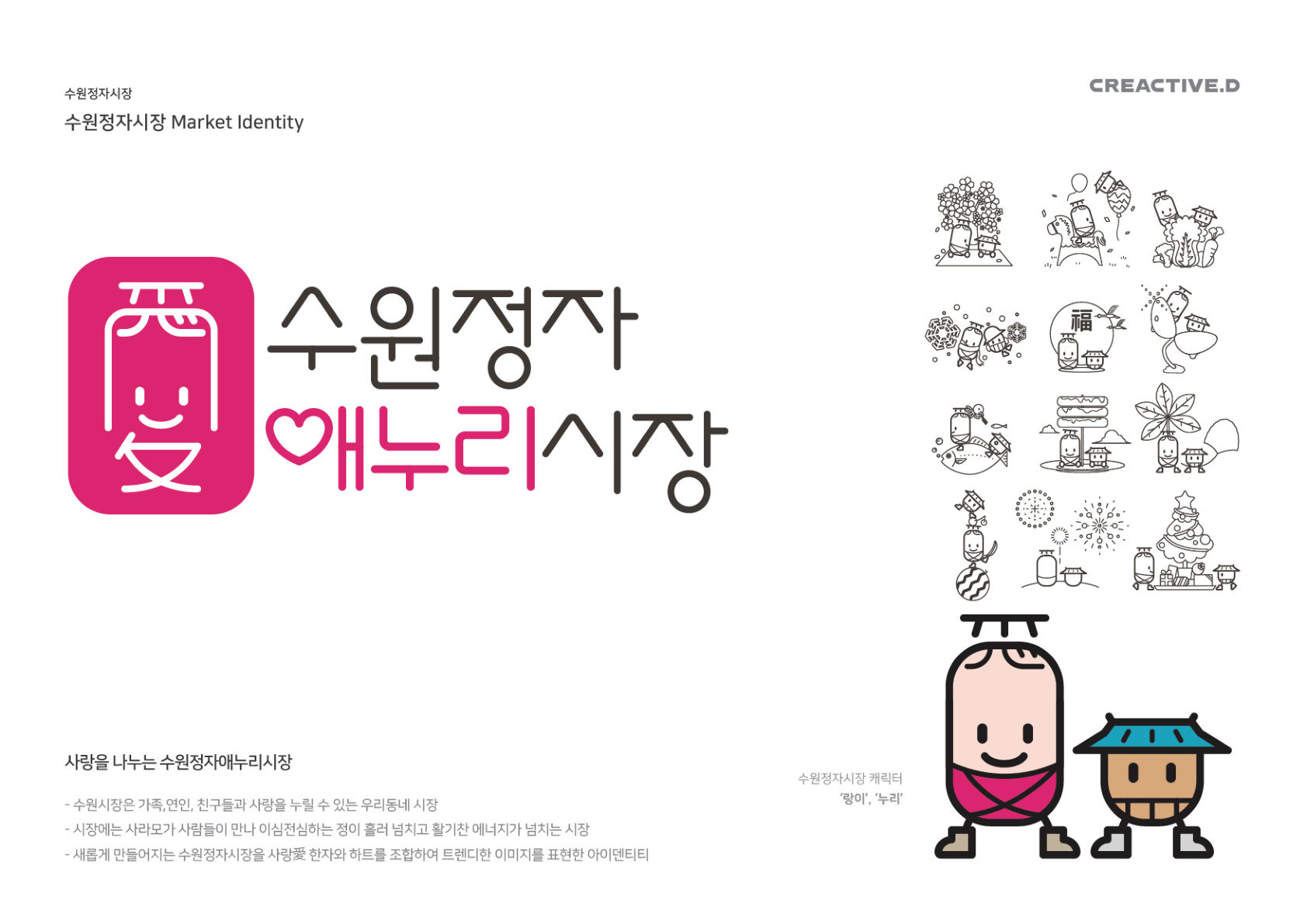 새롭게 만들어지는 수원정자시장을 사랑愛 한자와 하트를 조합하여 트랜디한 이미지를 표현한 아이덴티티