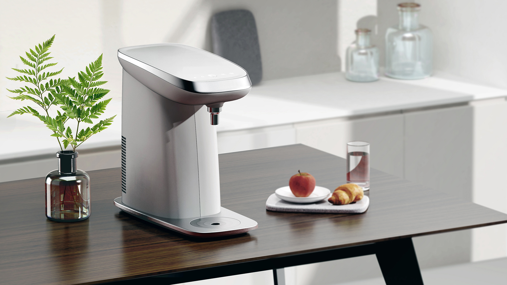 AIMU의 옹달샘 정수기는 ‘신선한 물을 제공하는 제품’의 이미지 주고자 지하 깊은 곳에서 정제되어 올라온 깊은 산 속 옹달샘을 모티브로 디자인하여 ‘샘’의 청명함과 깨끗한 이미지를 반영한 디자인입니다.