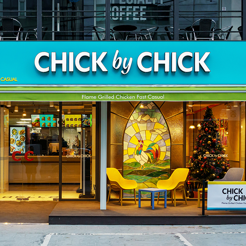 치킨 버거 옆의 또 다른 치킨 요리들로 다양한 식사를 즐긴다는 의미를 담아 반복적인 음율의 재미를 강조할 수 있는 브랜드를 디자인하였으며, 차별화된 브랜드 이미지의 확장으로 신선함과 즐거움을 선사합니다.