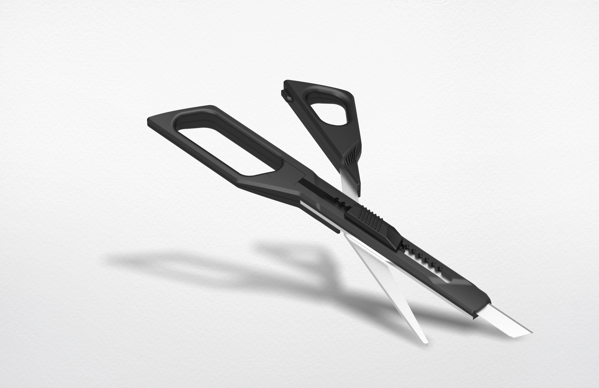 일상적으로 많이 쓰는 절단용 문구인 컷터칼과 가위를 하나로 통합하여, 사용의 편리성을 증대시킨 제품입니다. 컷터칼의 경우 사용하지 않을 때, 잠금 기능을 설정할 수 있습니다.
