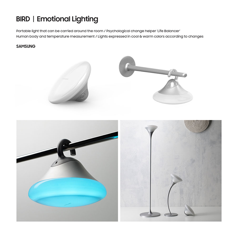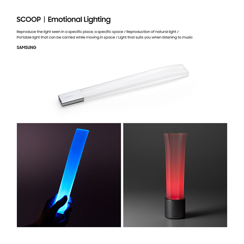 디자인 컨셉Realization of light as if sunlight is pouring on the window / Floor lamp that influences the atmosphere of the place you stay / Directing by programming light intensity and color suitable for music