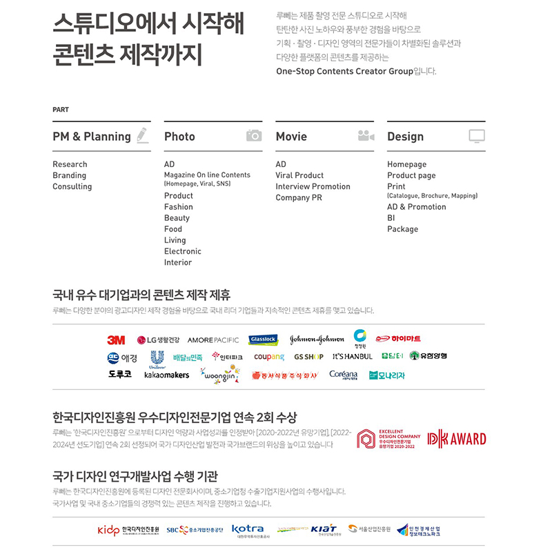 정교하고 감성충만한 기획, 예술로 승화시키는 사진, 브랜드 색깔을 찰떡같이 표현하는 디자인. 루뻬는 감성과 트렌드를 겸비한 결과물로 고객사의 발전을 돕습니다.
