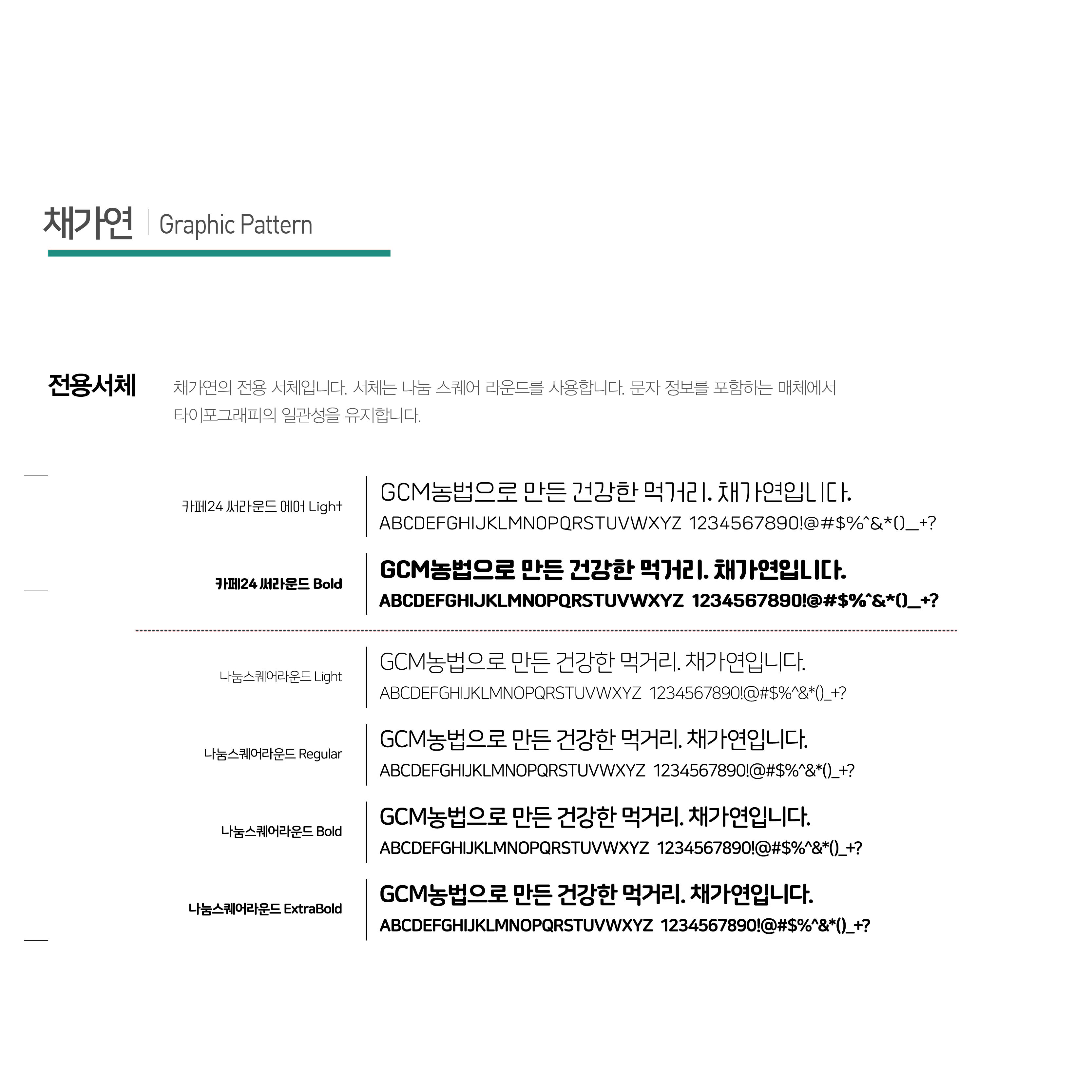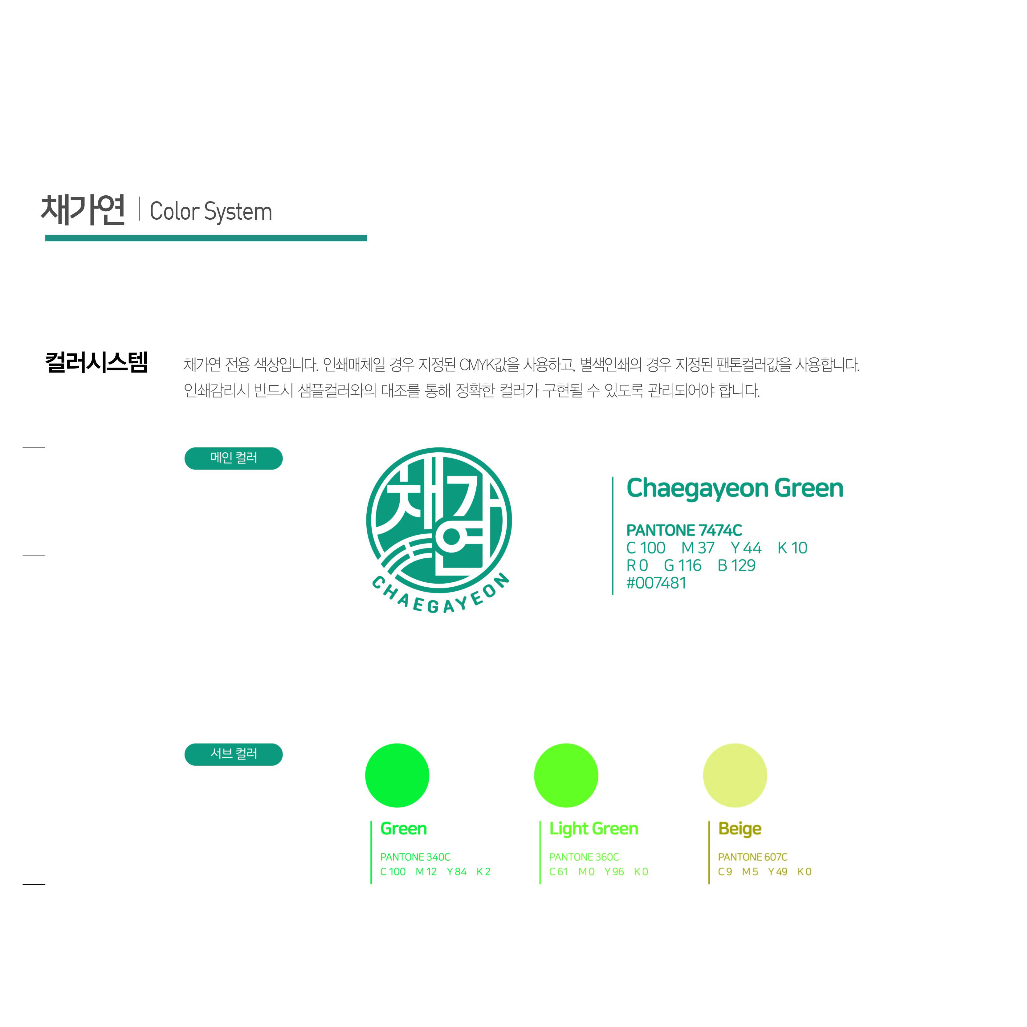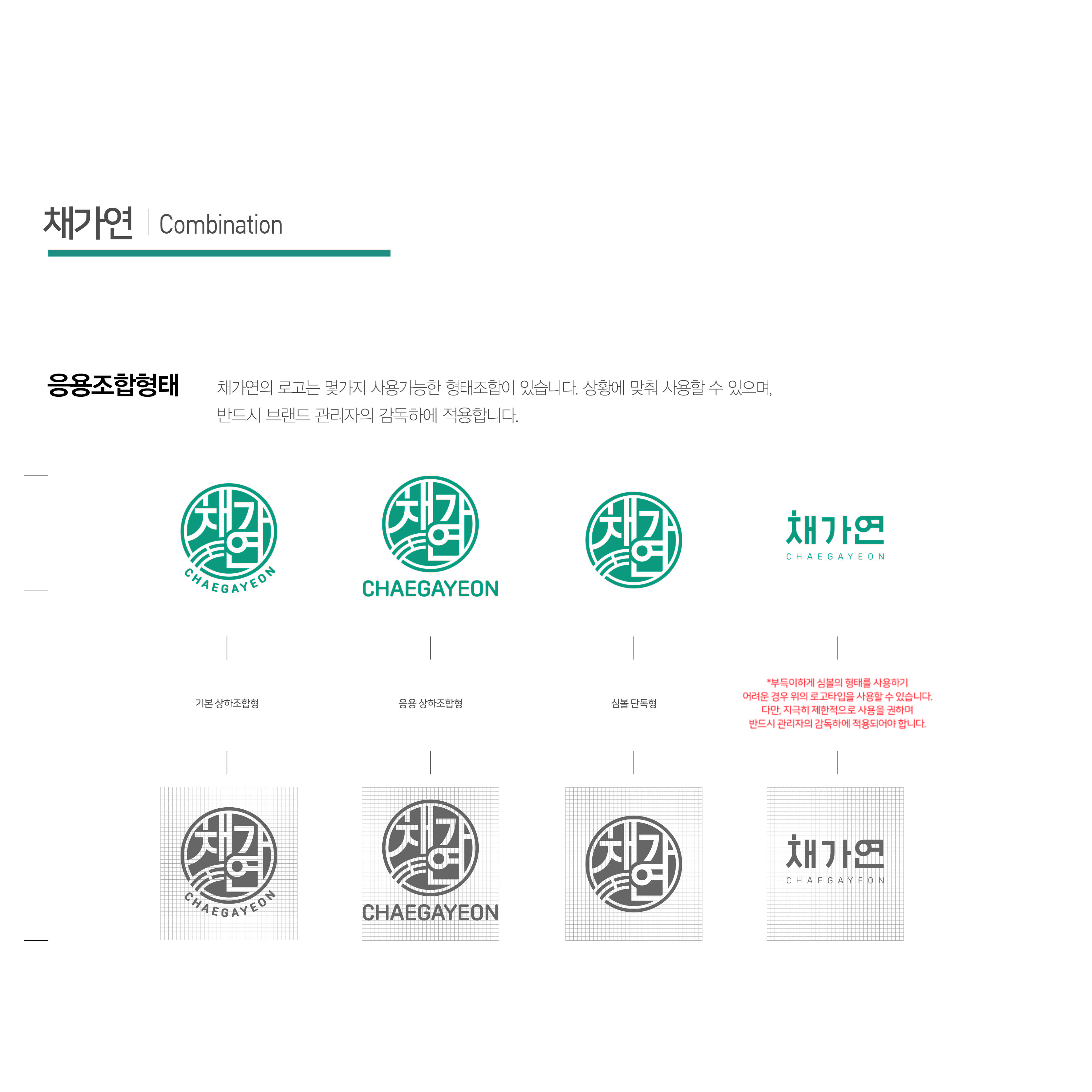 채가연의 친환경적인 느낌과 함께, 고객과의 연결고리인 다리를 형상화하여 로고를 디자인하였습니다.
