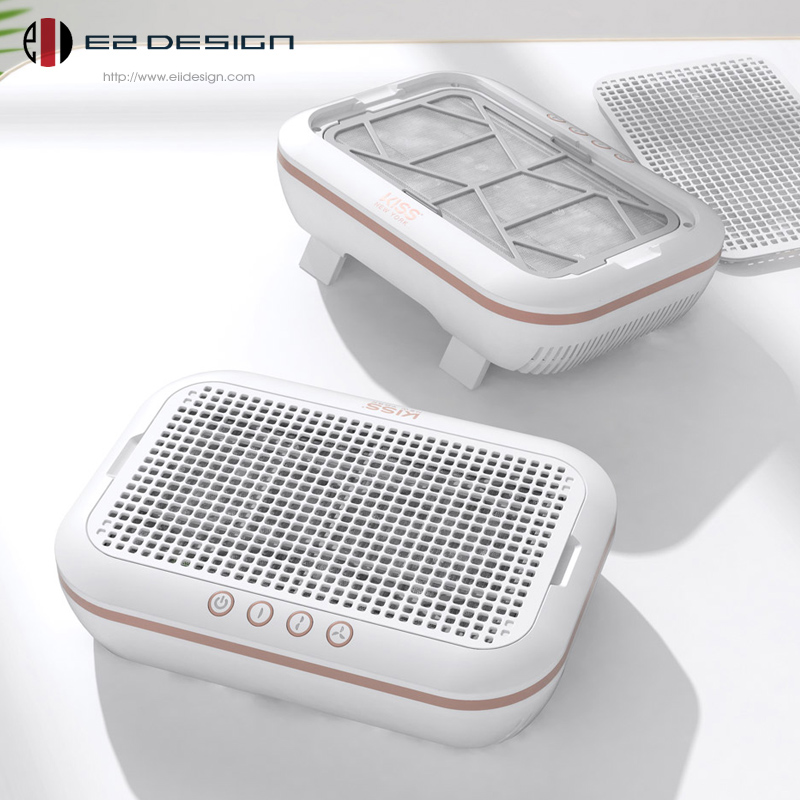 작은 네일샾에서도 효율적으로 사용할 수 있도록 이동 손잡이가 적용된 네일흡진기입니다. 고객 방향에서 편의를 위해 받침대가 내장되고 전원선을 3방향으로 하는 등 편의성에 초점을 두고 디자인 되었습니다.