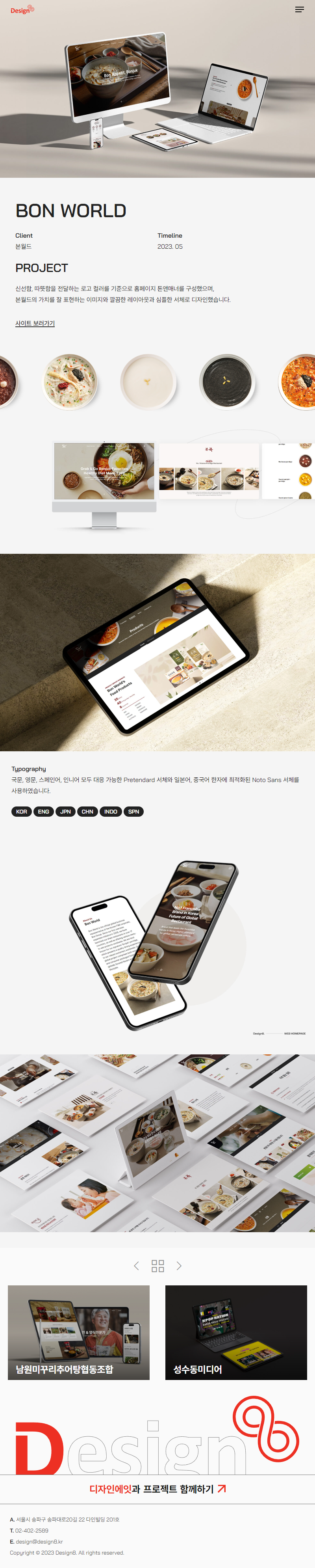 신선함, 따뜻함을 전달하는 로고 컬러를 기준으로 홈페이지 톤앤매너를 구성했으며, 본월드의 가치를 잘 표현하는 이미지와 깔끔한 레이아웃과 심플한 서체로 디자인했습니다.