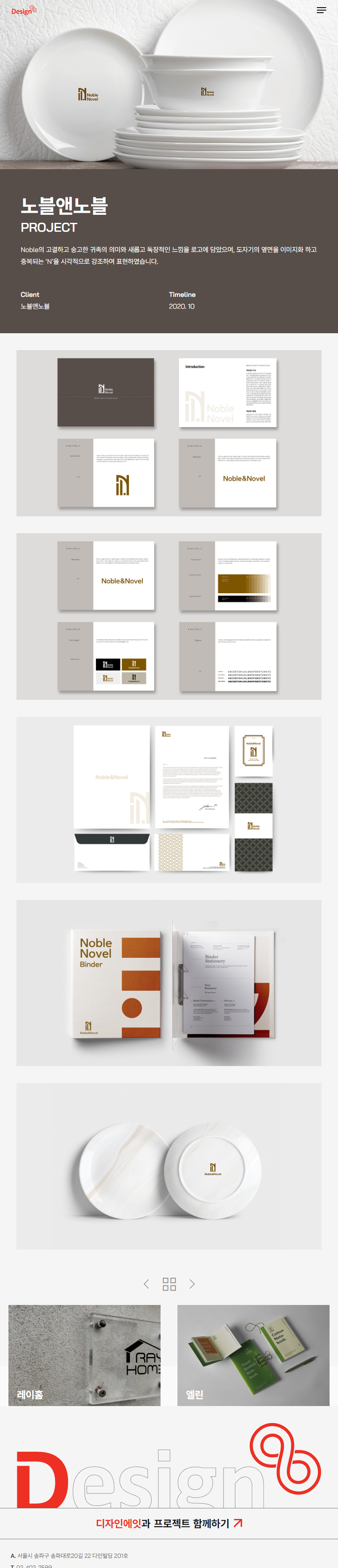 Noble의 고결하고 숭고한 귀족의 의미와 새롭고 독창적인 느낌을 로고에 담았습니다. 도자기의 옆면을 이미지화하여 중복되는 ‘N’을 시각적으로 강조하여 표현하였습니다.
