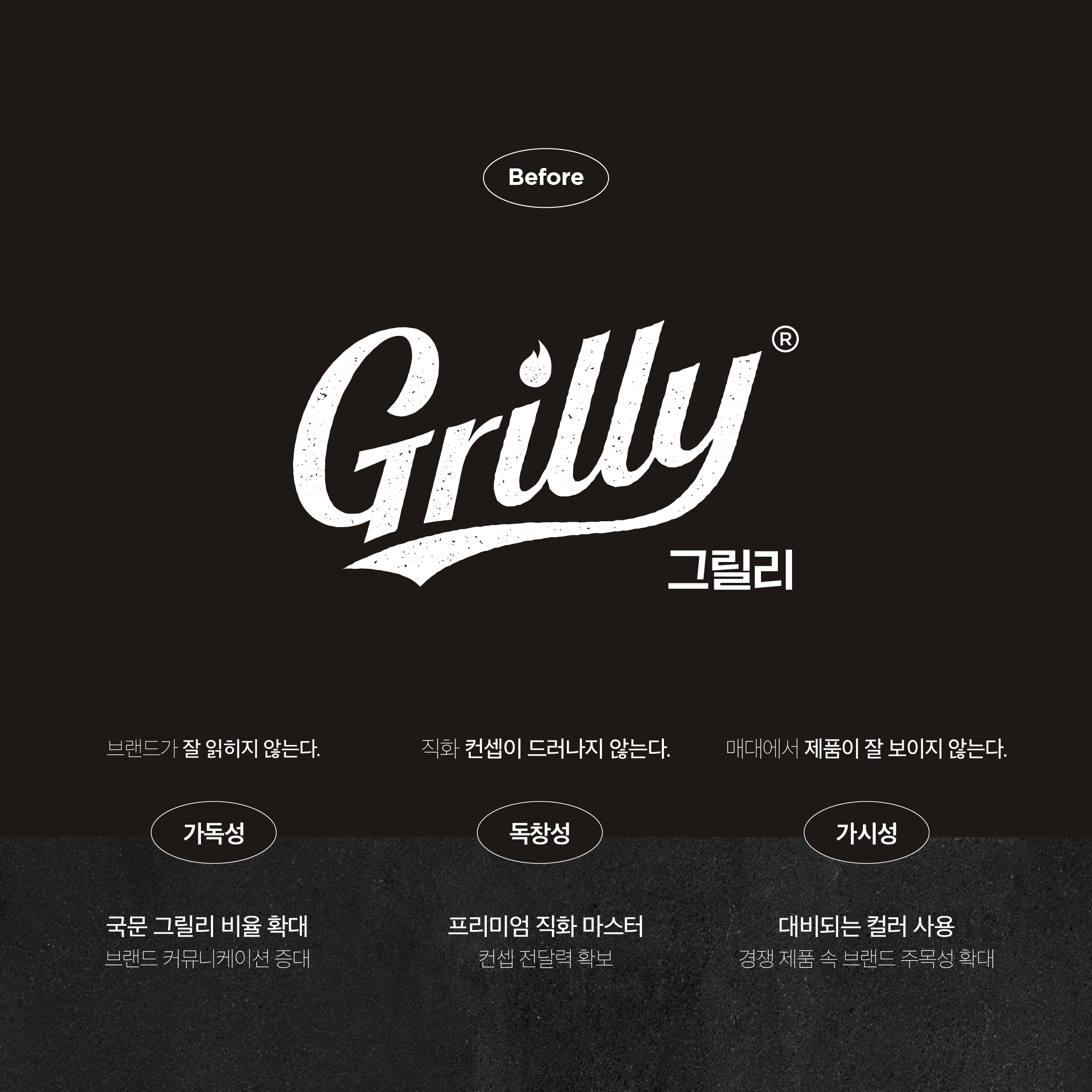 기존 그릴리 브랜드의 아쉬운 부분들을 보완하여 잘 보이며, 가시성이 뚜렷하도록 리뉴얼 진행.