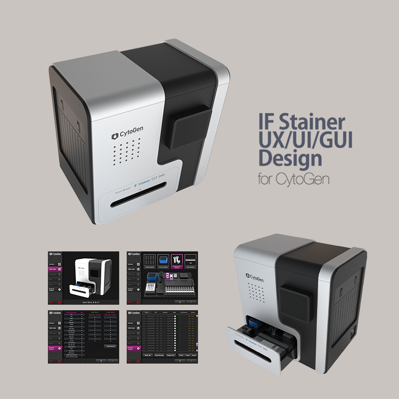 IM의 진단기기 제품디자인으로 국책과제로 진행된 프로젝트이다. 혈액이나 타액을 시약에 넣어 다양한 질병을 조기에 검사하는 장비로 쉬운조작과 유기적인 본체디자인으로 고급스러움을 주었다.
