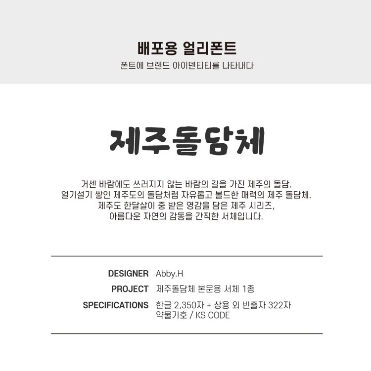 솔솔 바람이 지나가는 길을 가진 제주의 돌담, 울퉁불퉁 얼기설기 제주도 돌담을 닮은 서체입니다.