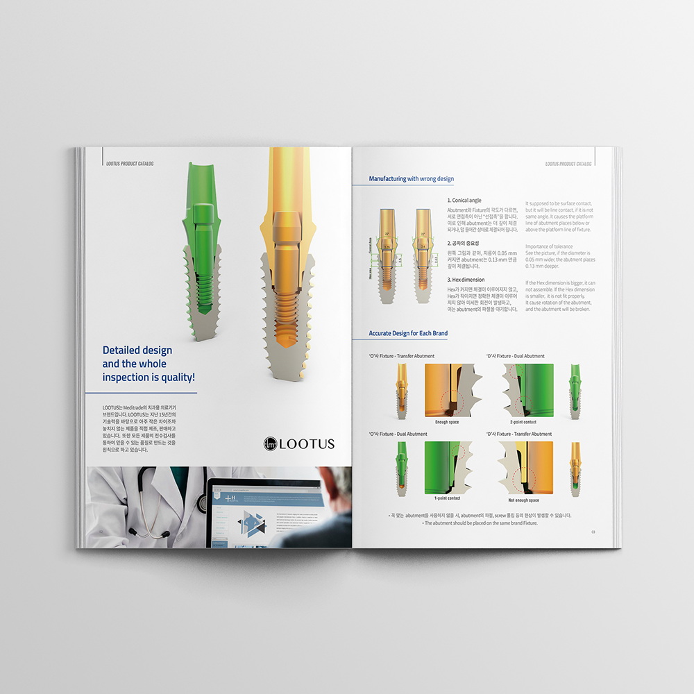 치아 임플란트 의료기기 제조 기업 및 제품소개 카탈로그 디자인 제작