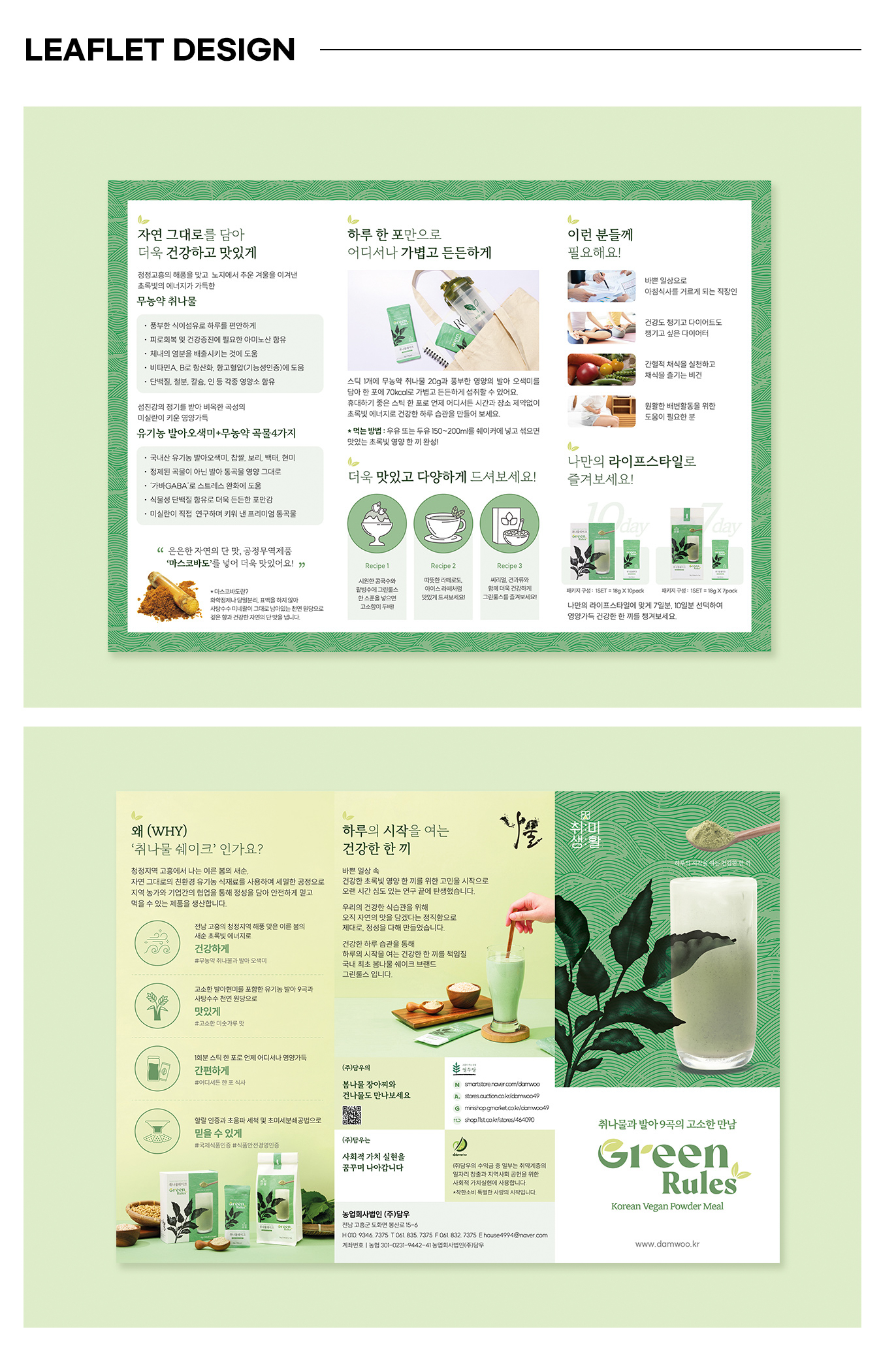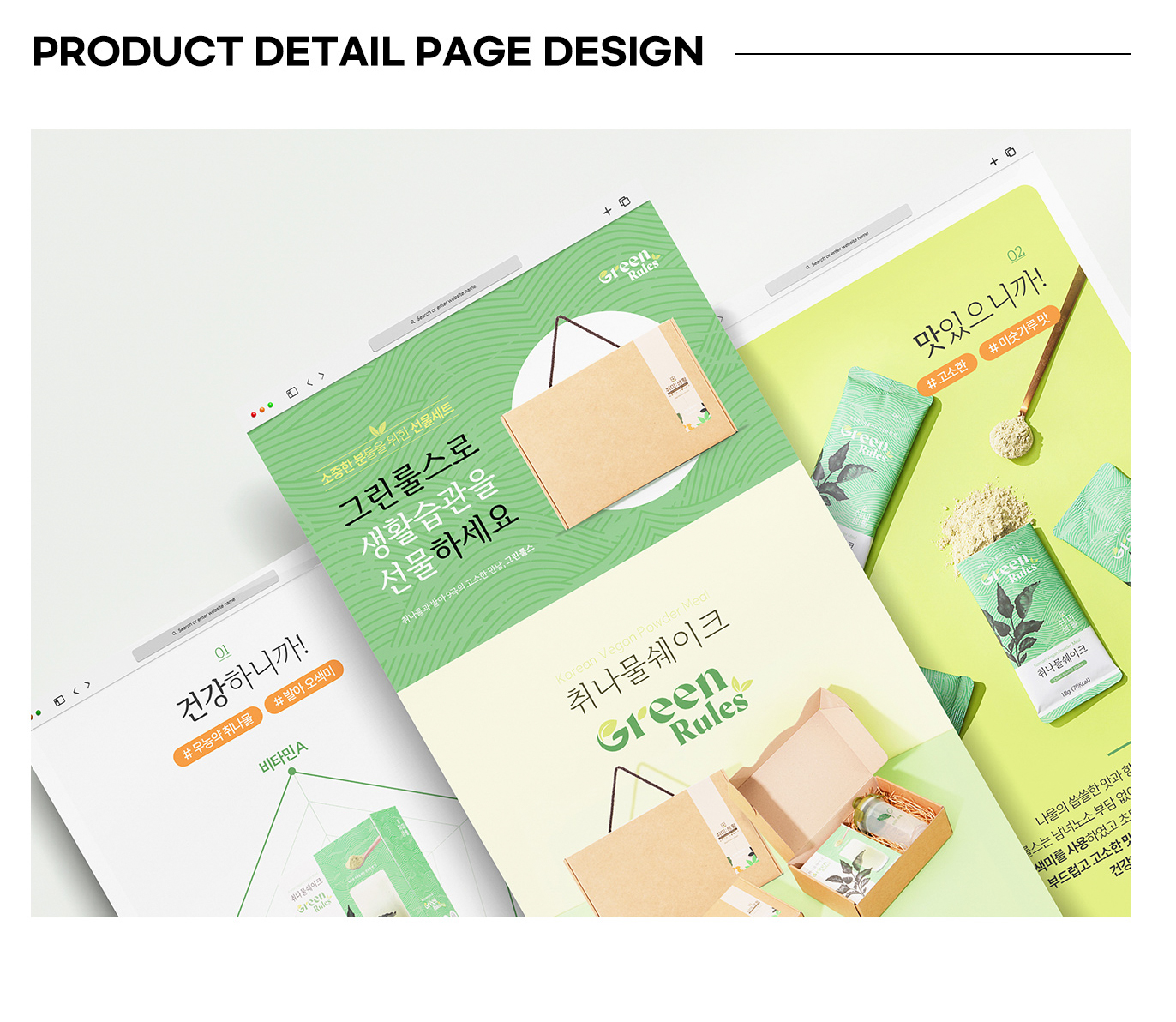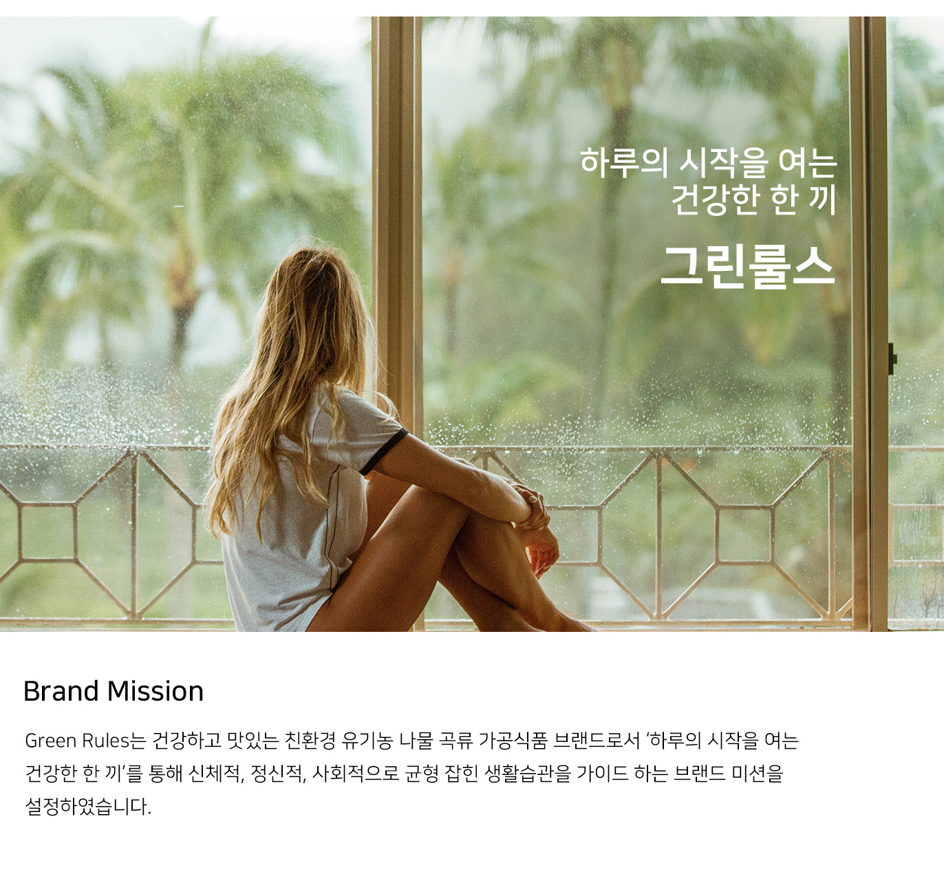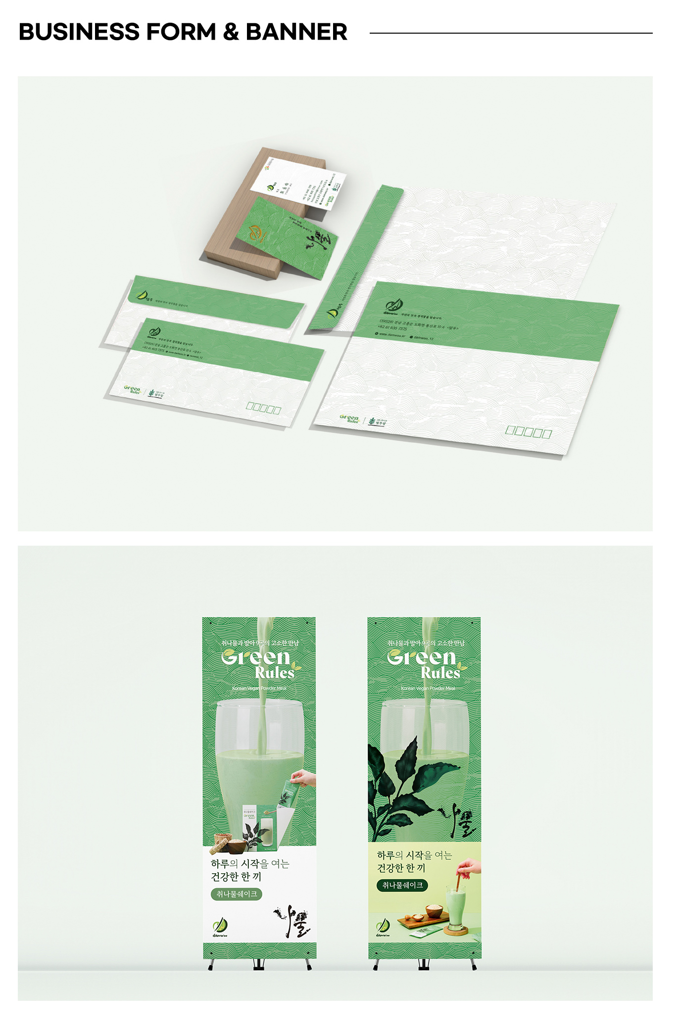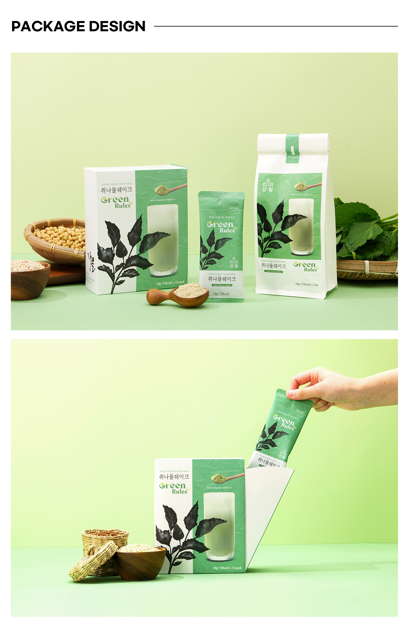 그린룰스는 국내 최초 나물 곡류 가공식품 브랜드 입니다. 바쁜 일상에 지친 현대인들을 위한 건강한 한끼라는 브랜드의 지향점 아래, 브랜드의 아이덴티티를 정립하고 일관된 브랜드 이미지를 제고하기 위한 기획