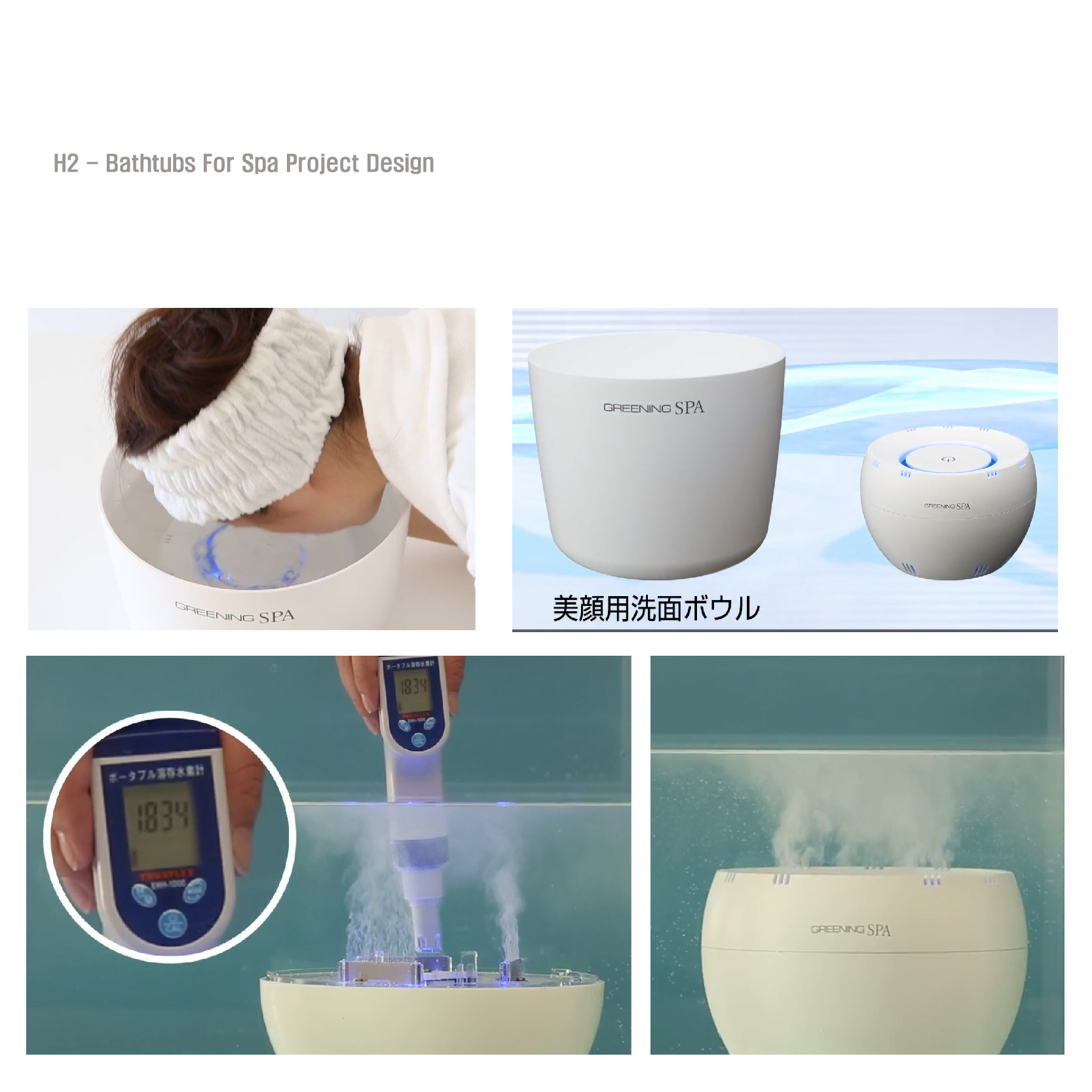 - 피부 미용에 수소수가 피부 속 안쪽까지 쉽게 침투하여 활성산소 제거, 항산화,항염증,항노화 작용을 하는제품. - SOFT & ROUND 형상과 청결한 느낌을 위해 무광 화이트 칼라와 Blue LED를 적용 디자인함.