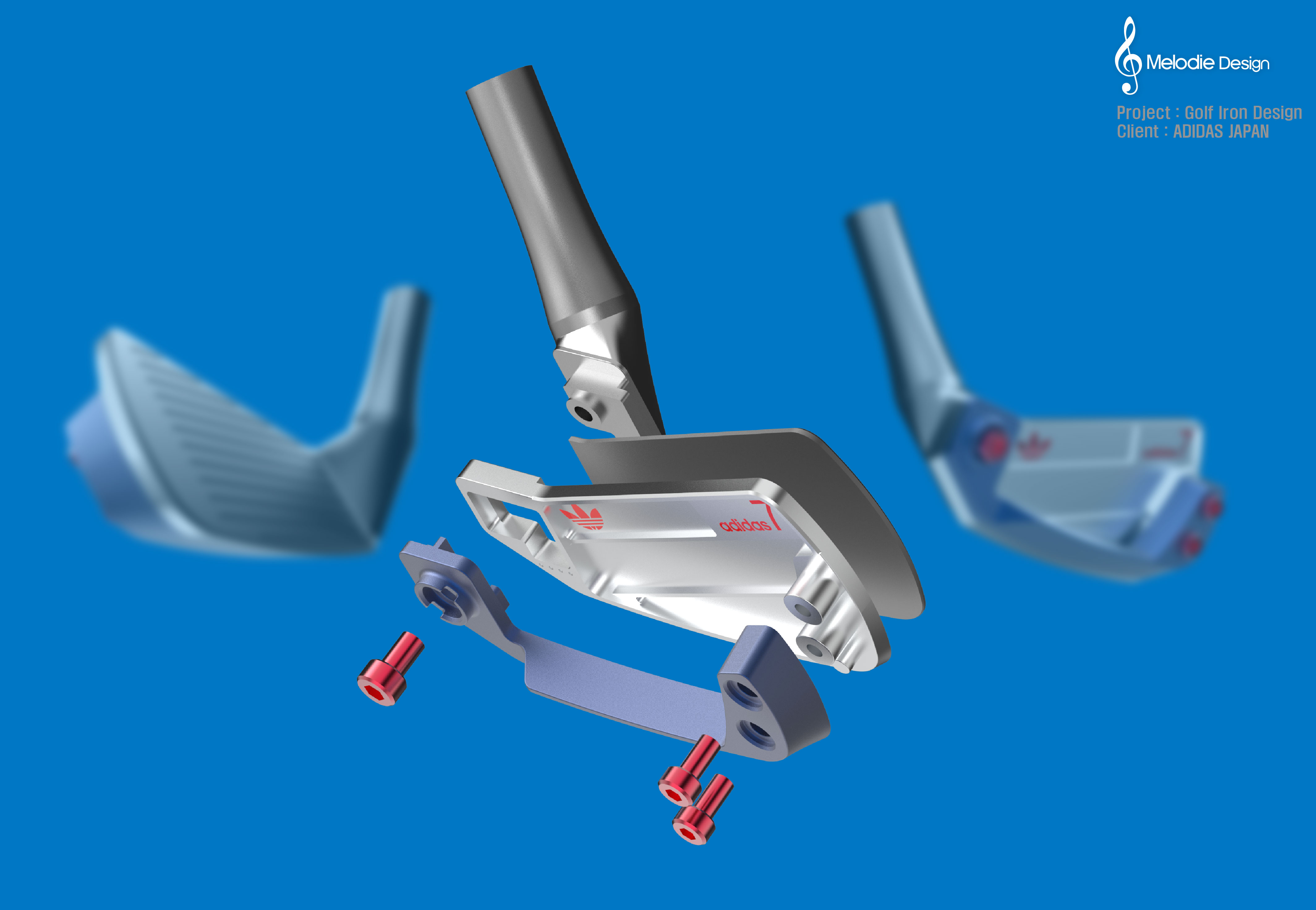 골프아이언 헤드 디자인 및 설계 넥부분과 페이스면, 솔부분의 소재를 각 활용에 맞는 다른 금속으로 제작 티타늄페이스와 스텐레스 소재 사용