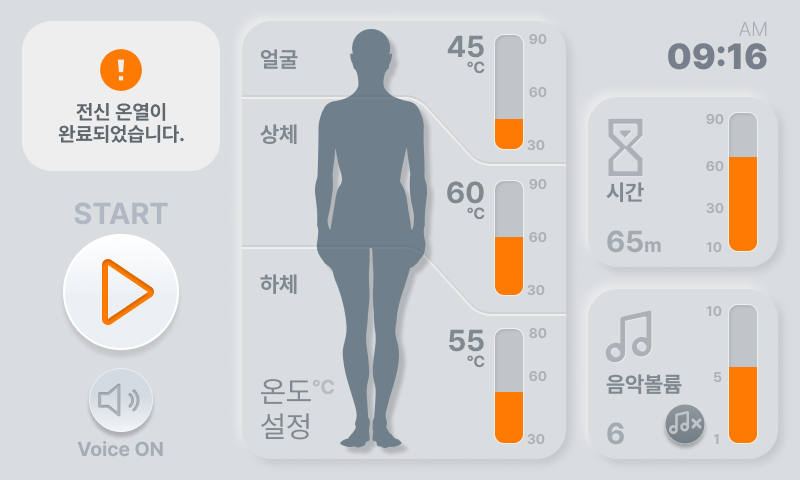 온열기기 제어용 디스플레이 UI / GUI 디자인, 의료기기 UI / GUI 디자인