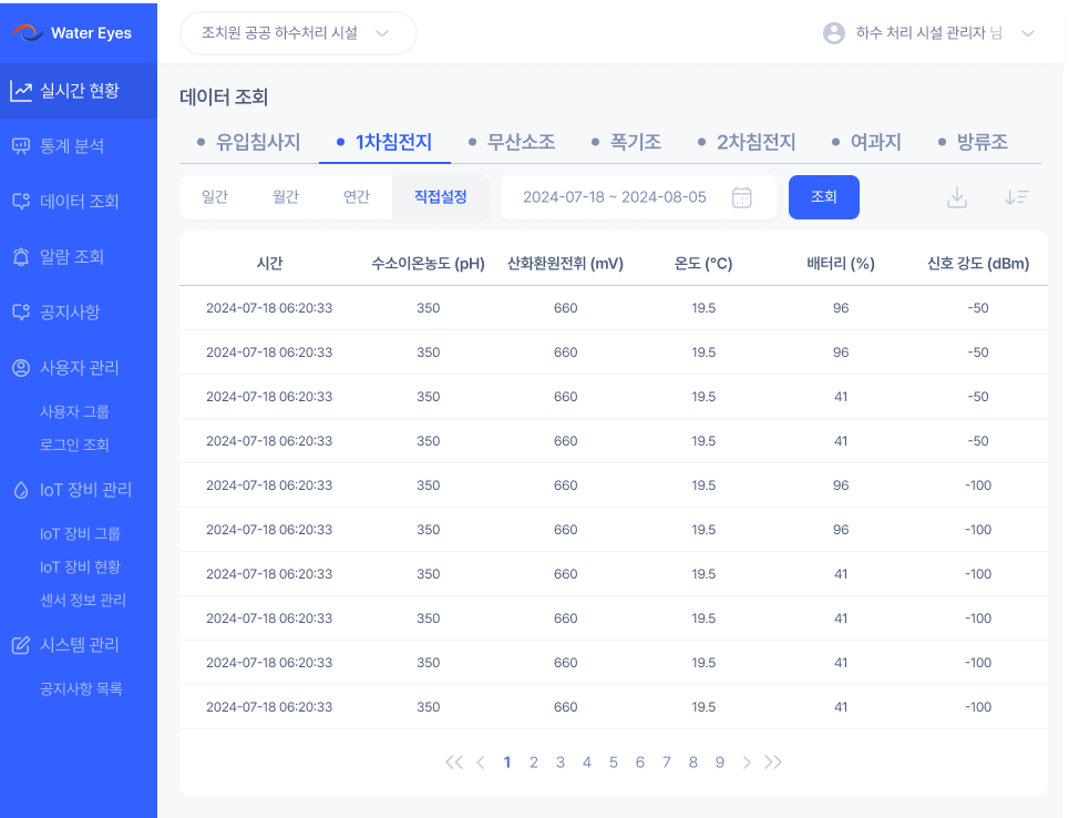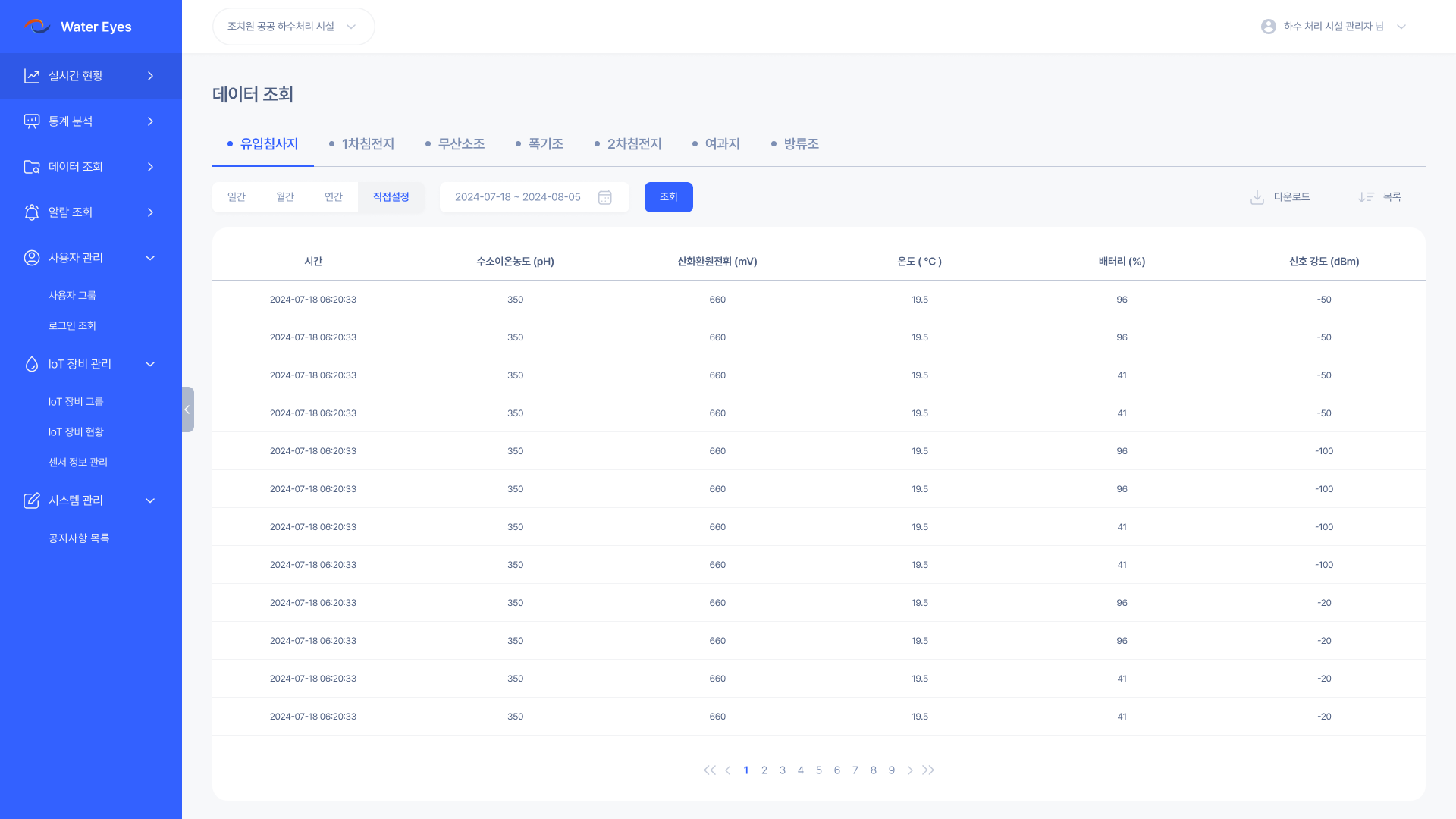 수질 관리시스템 UI 디자인 및 시각화 개발작업