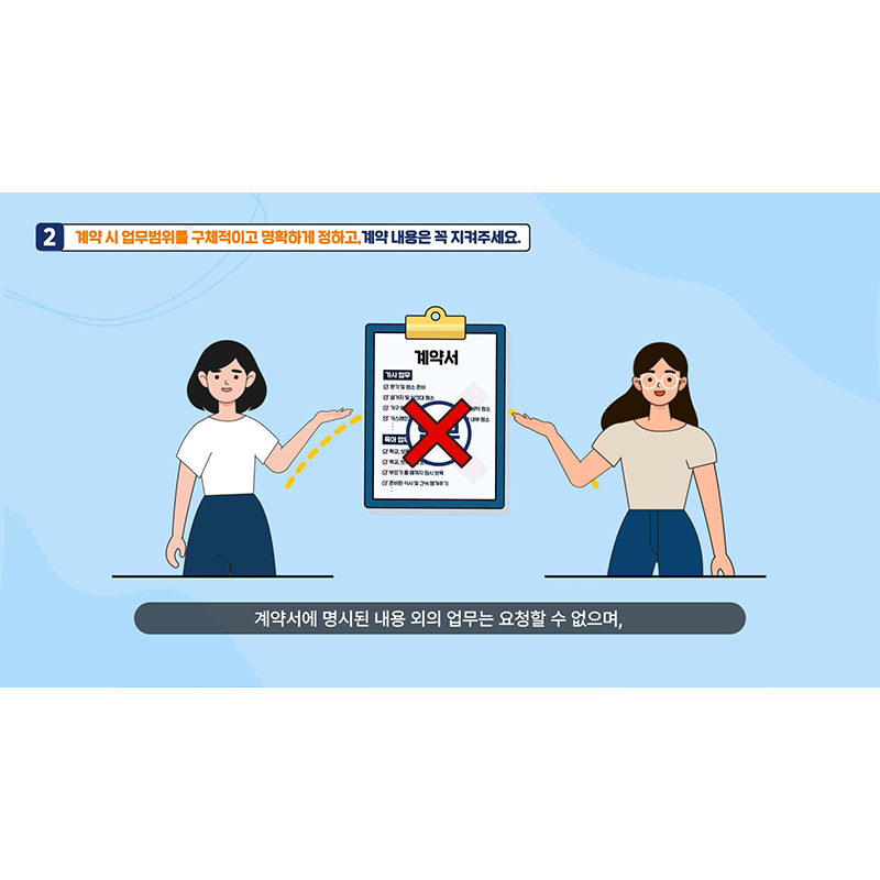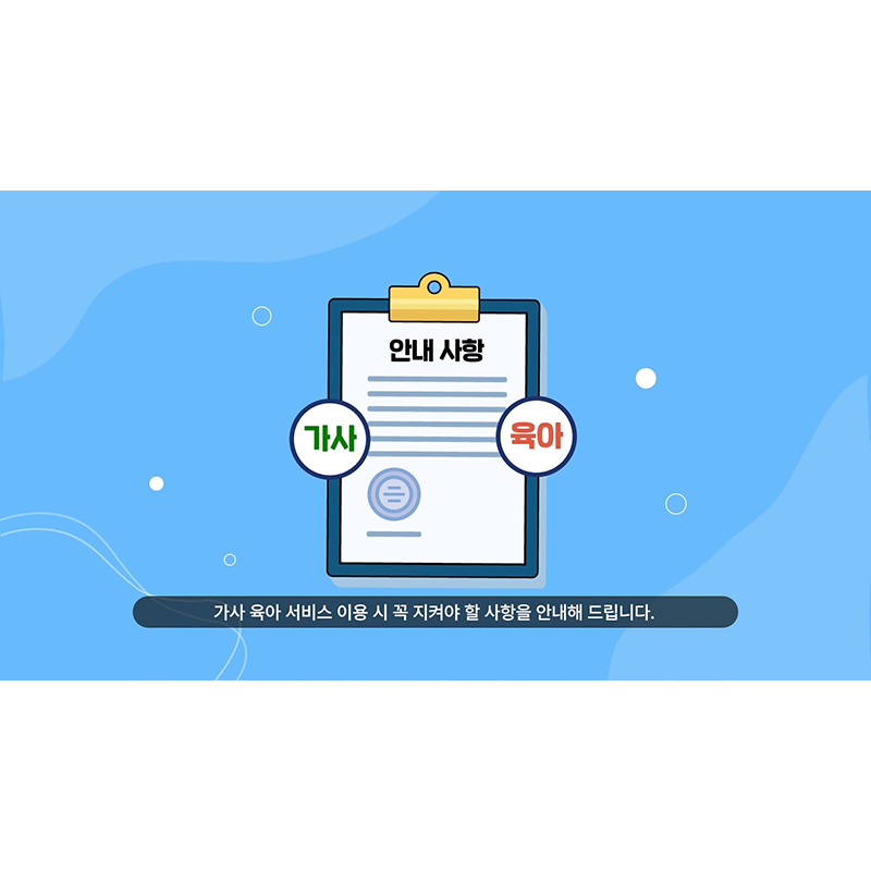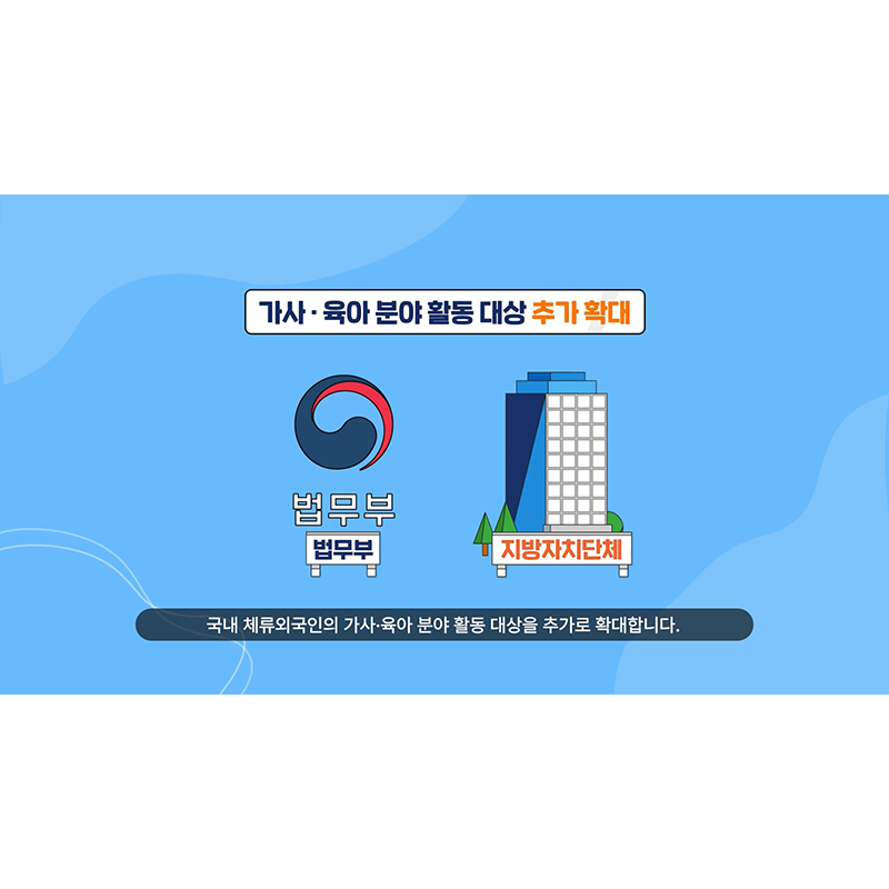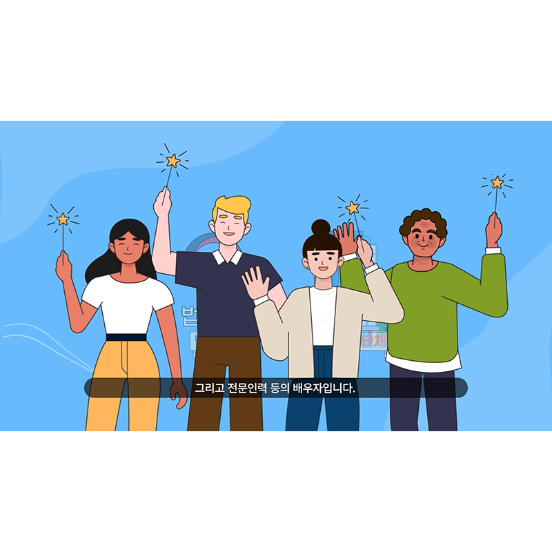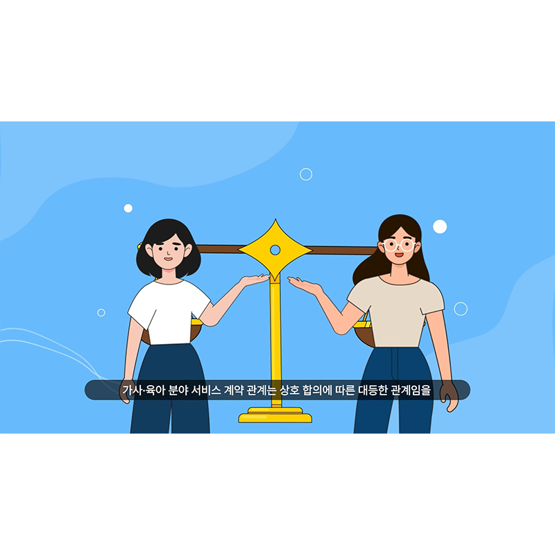 법무부 국내 체류외국인 가사, 육아 분야 활동 상호인권 존중 안내영상으로, 모션그래픽을 활용해 다양한 문화와 배경을 가진 사람들이 상호 협력할 수 있도록 안내함.