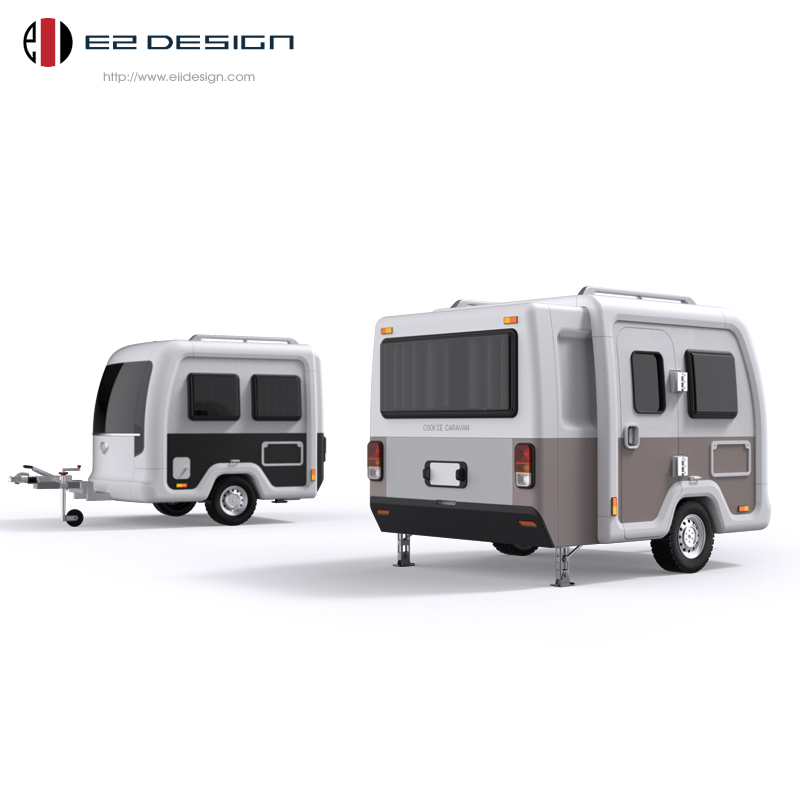 내부 사이즈를 늘리고 줄일 수 있도록 계획된 캠핑용 카라반입니다. 이동시에는 길이를 줄이고 사용시에는 늘려서 거주 공간을 높일 수 있는 제품으로, 양산 전에 사업부가 철수하여 디자인만 완료되었습니다.